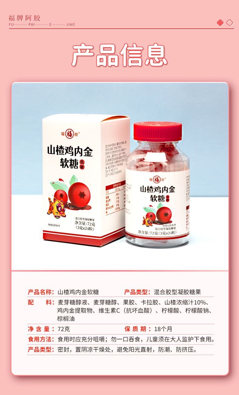 商品名称:福牌阿胶山楂鸡内金沙棘软糖儿童非调理脾胃幼儿积食厌食零食