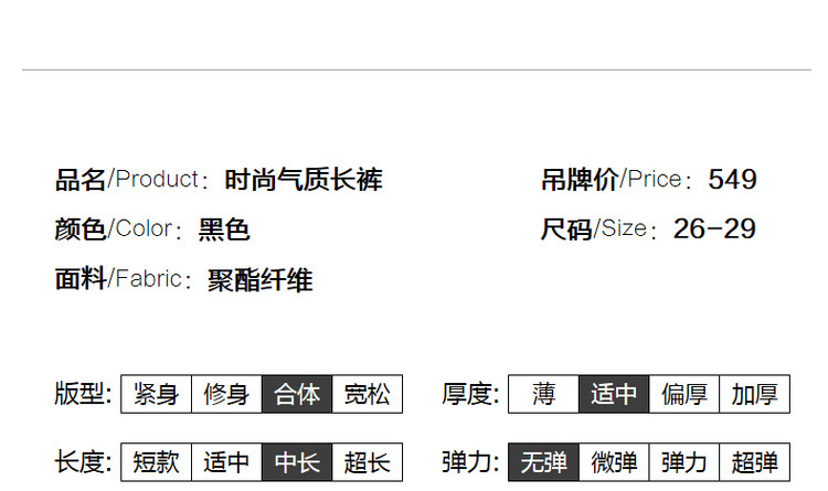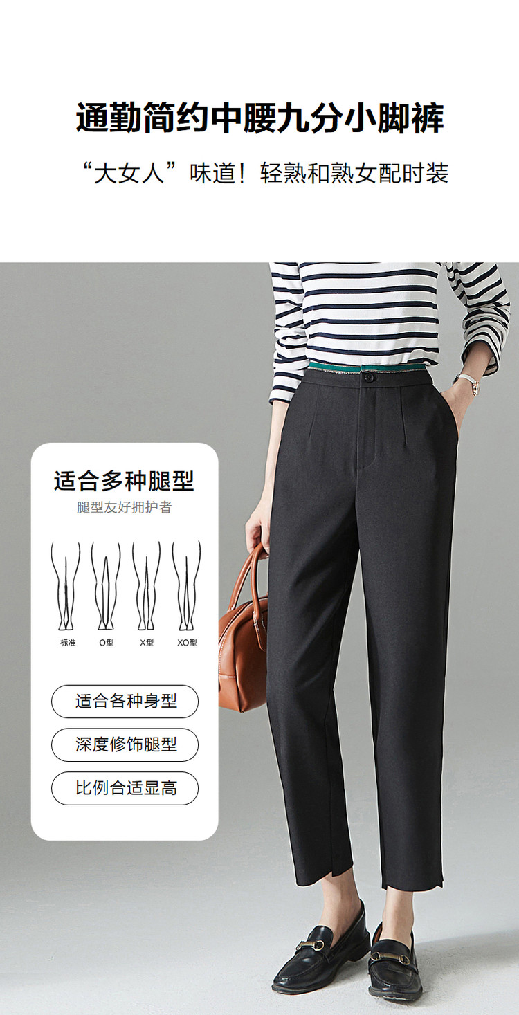 商品名称:【通勤九分小脚裤】秋简约中腰拉链女裤子休闲裤 834625