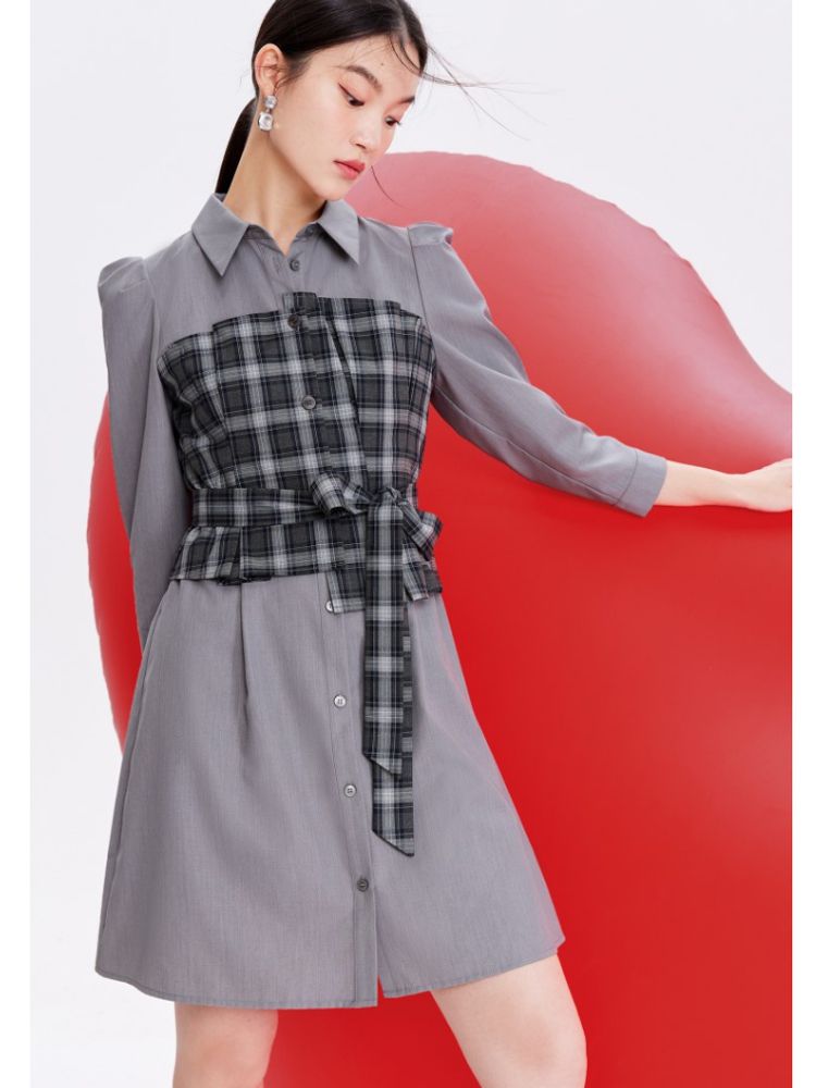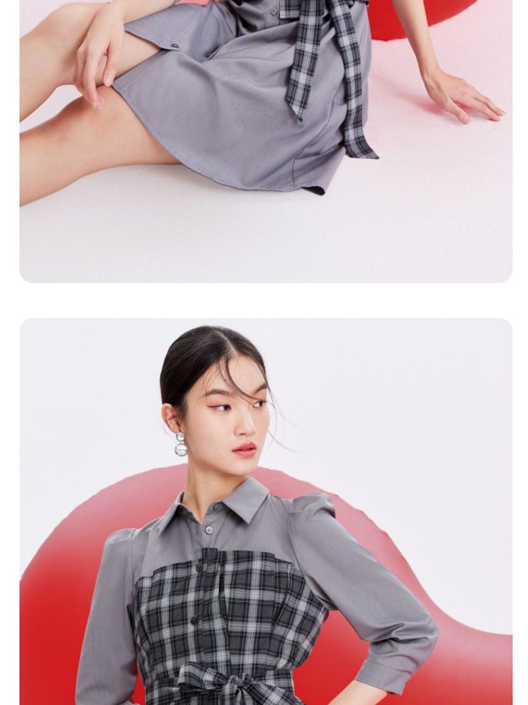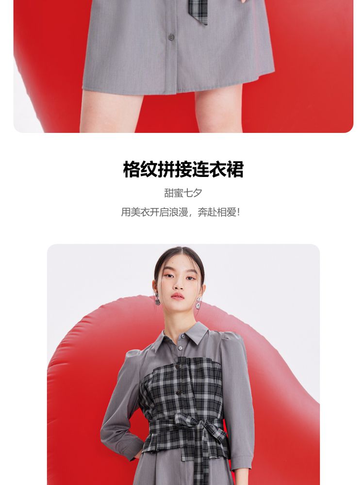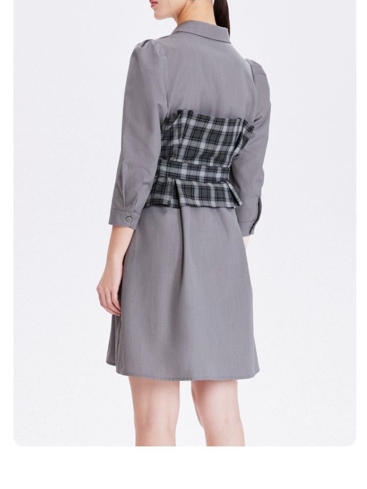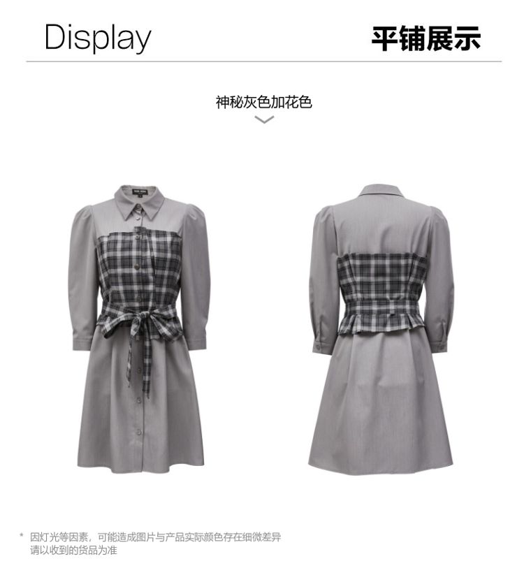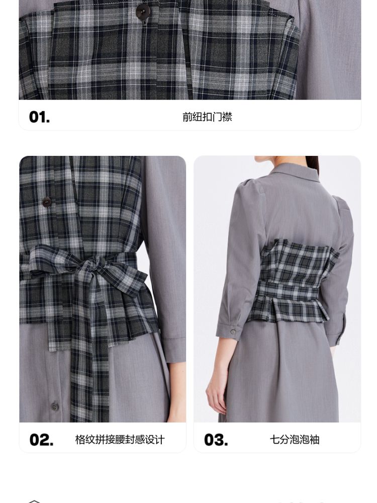商品名称:【春夏专柜款】格纹拼接优雅显瘦七分袖连衣裙气质百搭时尚 089169