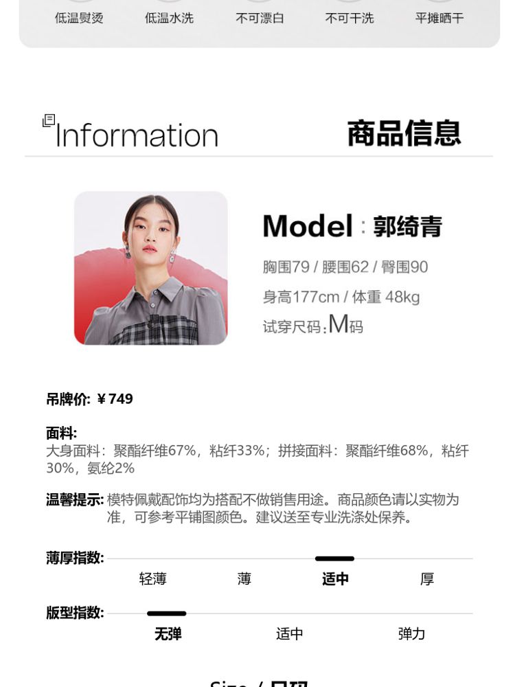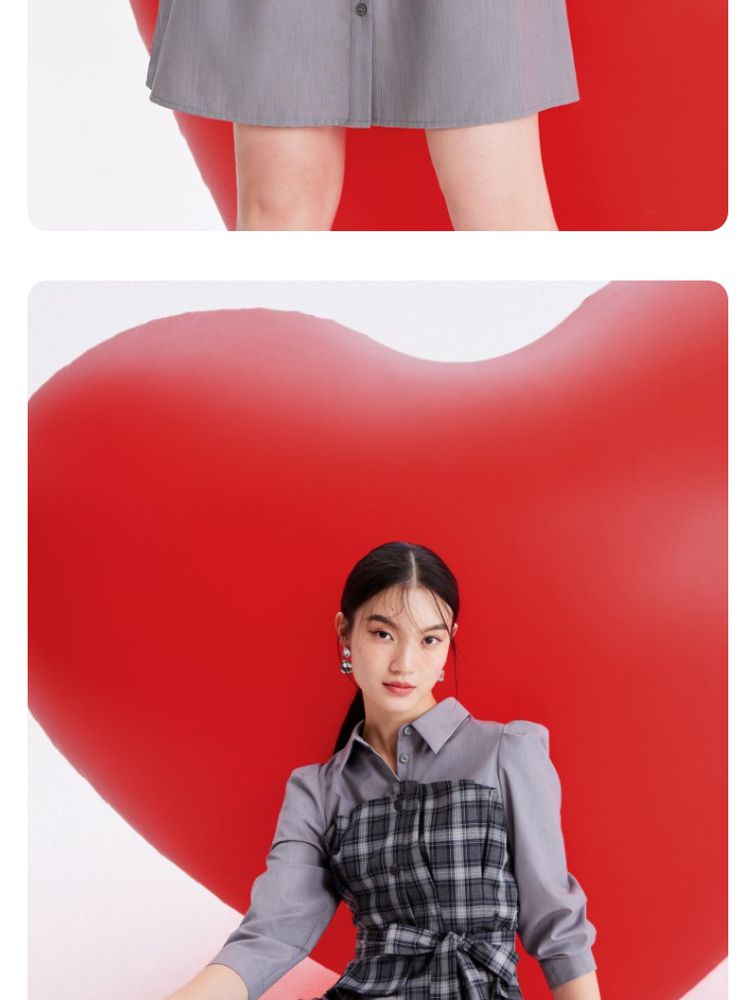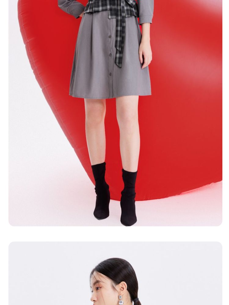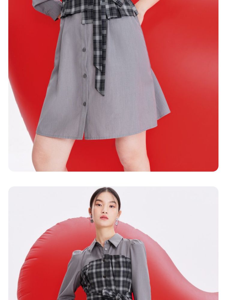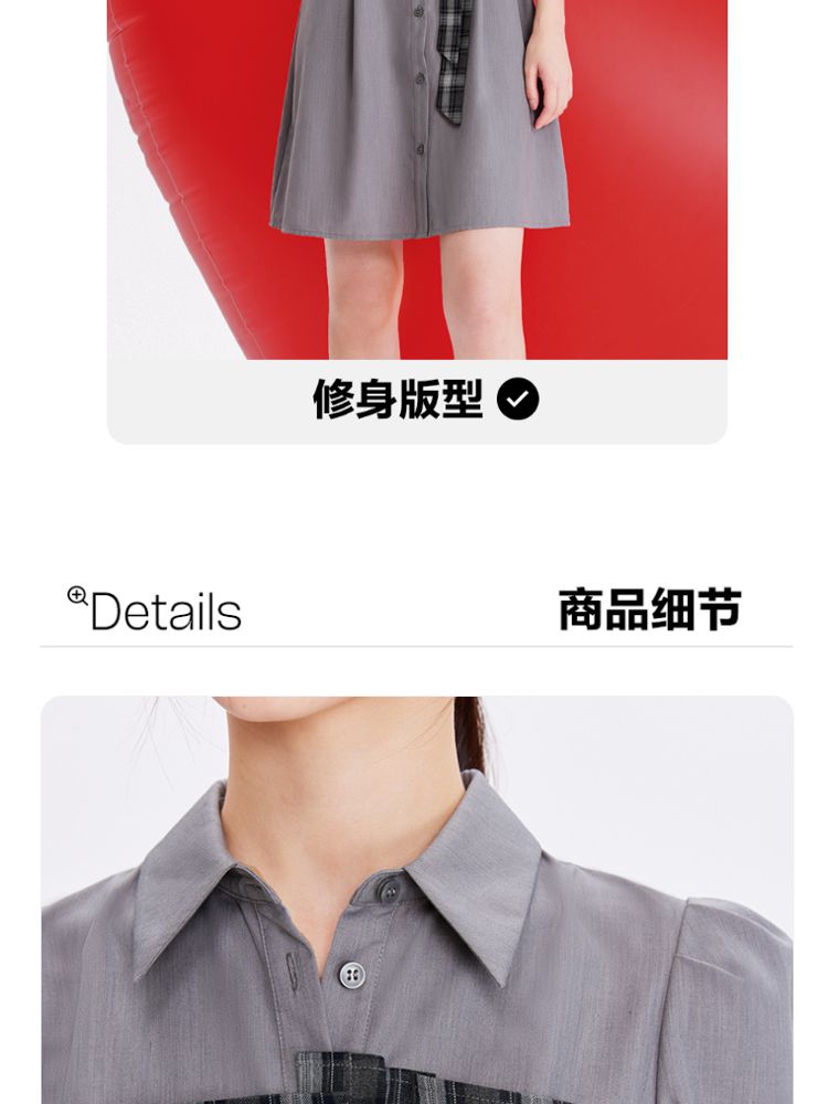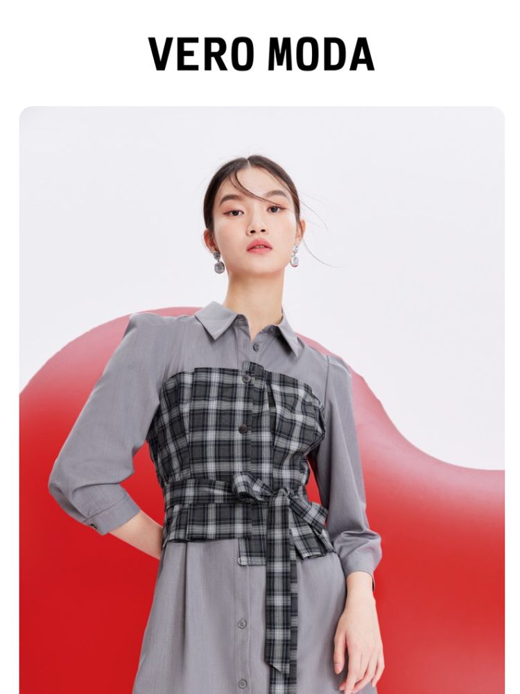 商品名称:【春夏专柜款】格纹拼接优雅显瘦七分袖连衣裙气质百搭时尚 089169