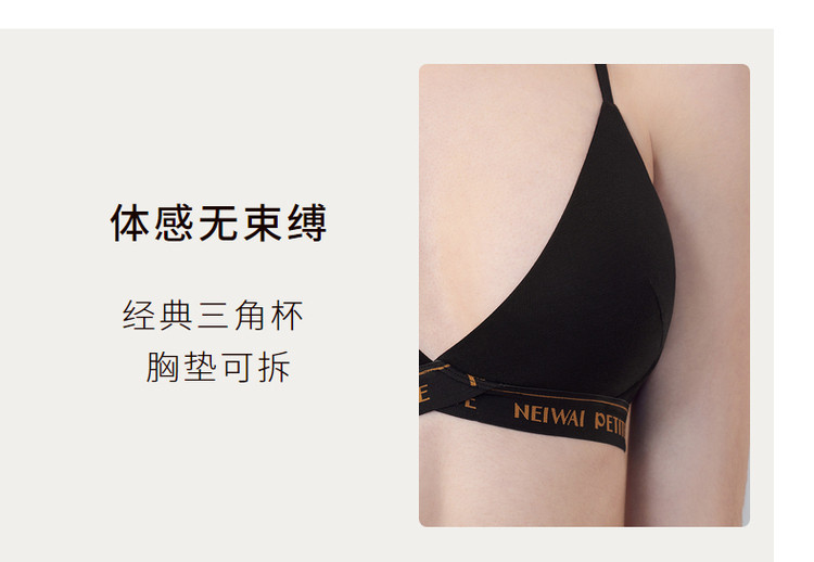 商品名称:NEIWAI内外撞色织带三角杯文胸女士简约柔软设计感舒适亲肤 207050
