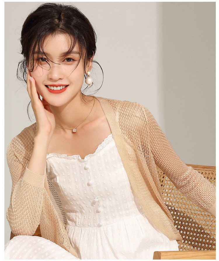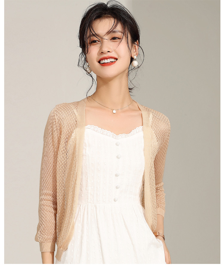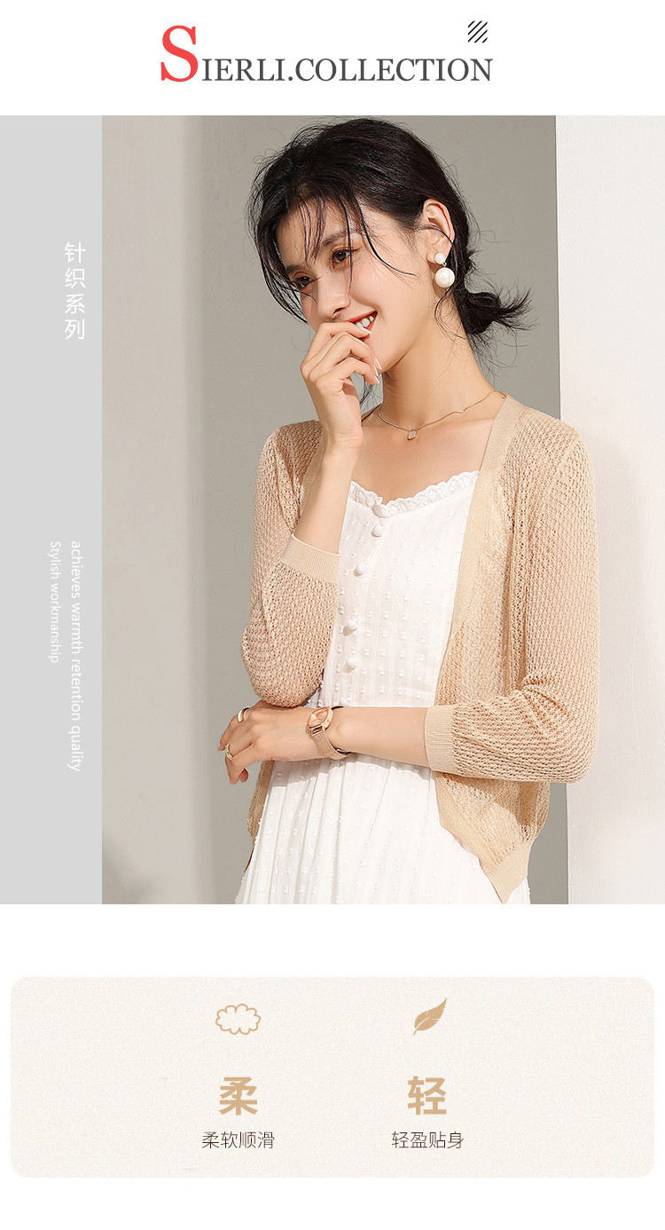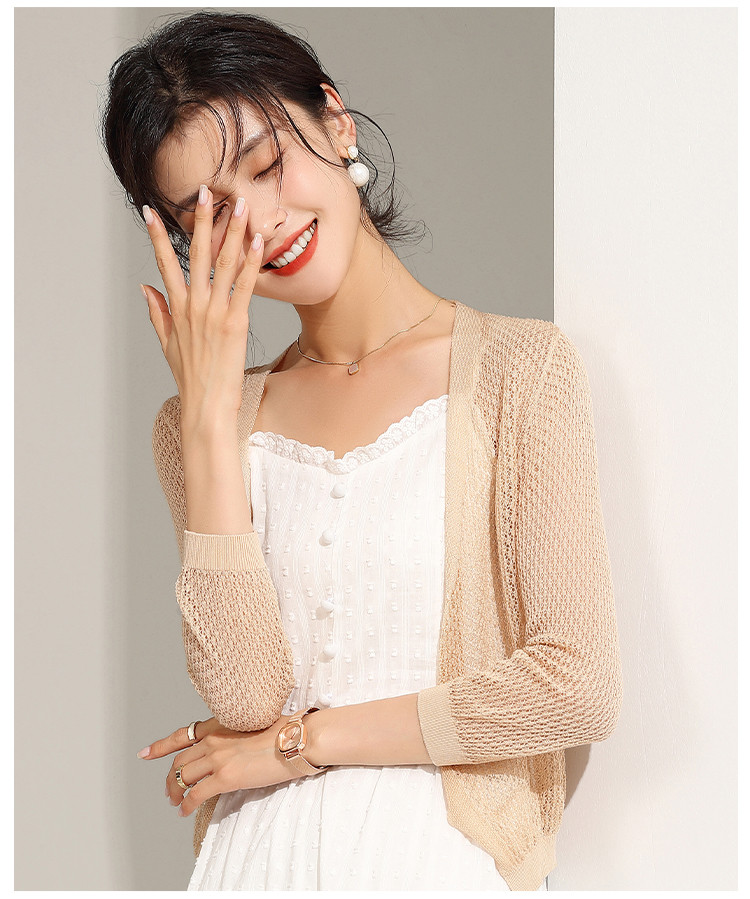 商品名称:【含桑蚕丝含莱赛尔】夏季外套女薄款披肩外搭镂空空调衫外套女 554655