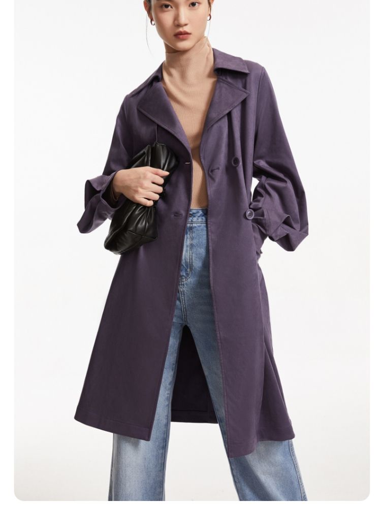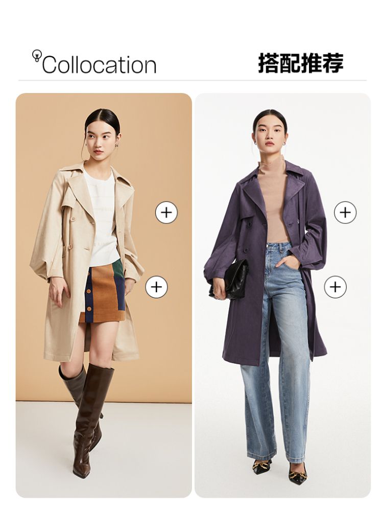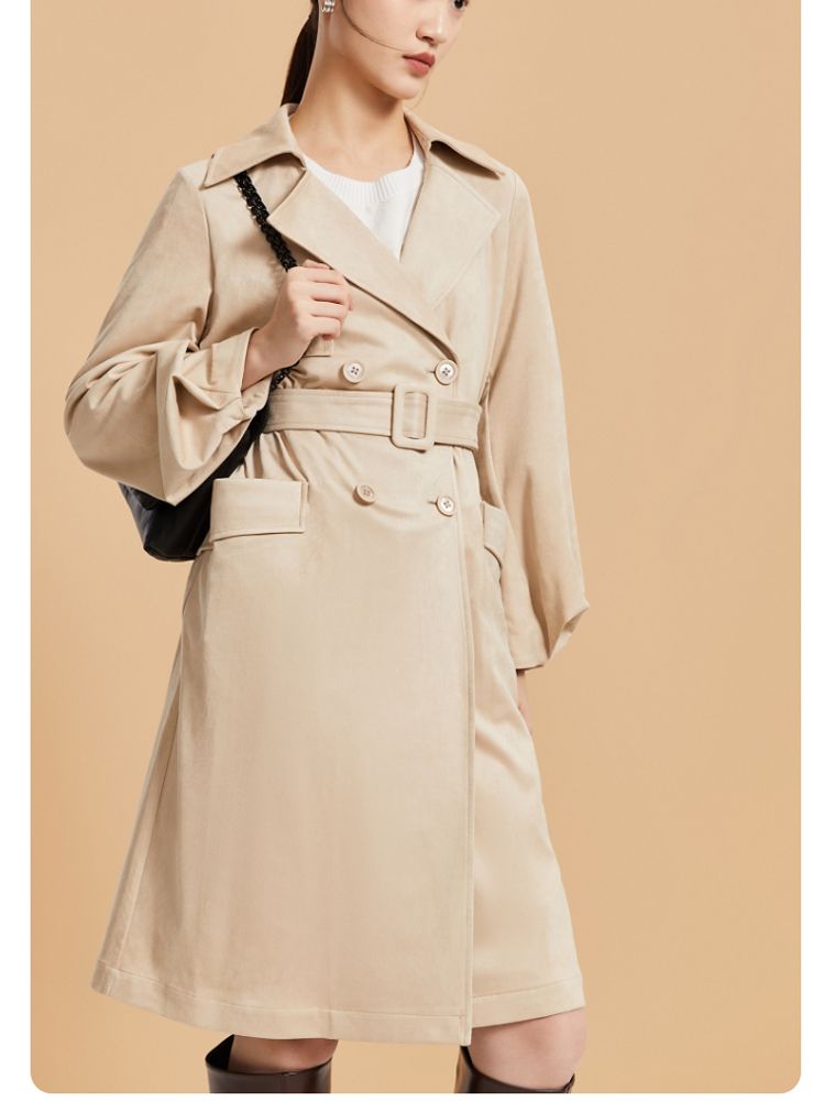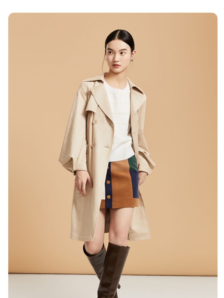 商品名称:收腰双排扣中长款纯色风衣外套女气质百搭时尚春夏 695057