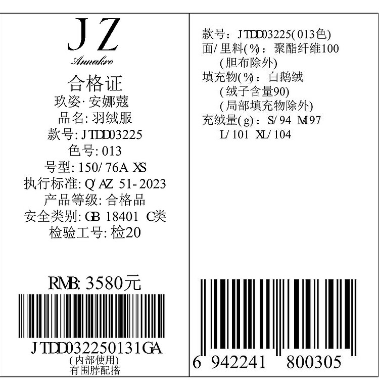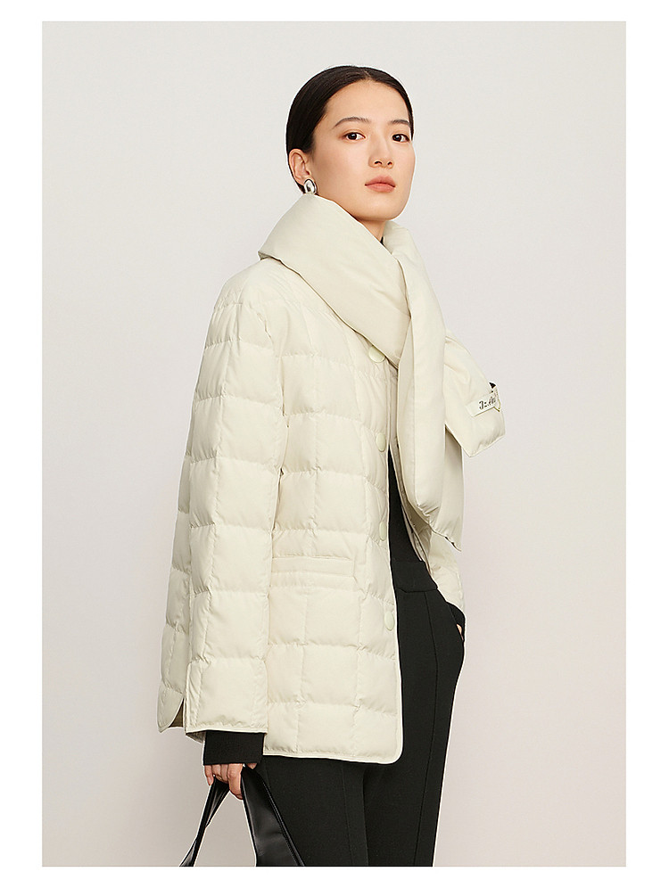 商品名称:【仙·羽绒】玖姿旗下安娜蔻系列可拆卸围巾领中长款羽绒服女冬季 144716