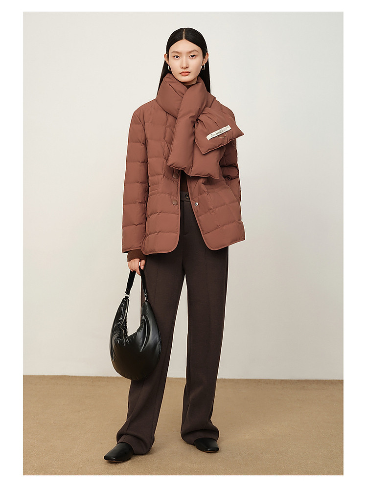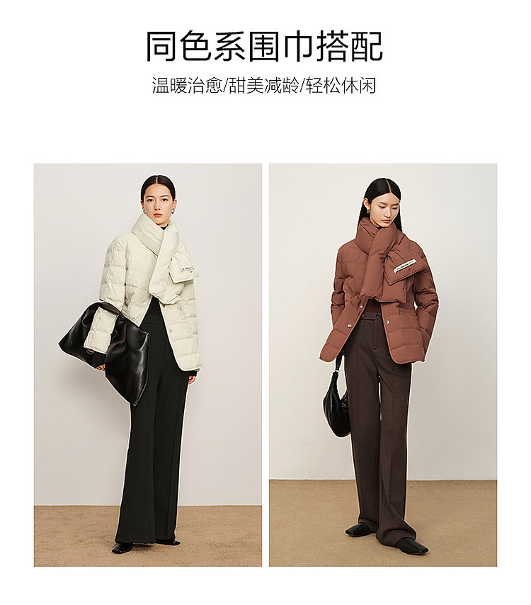 【仙·羽绒】玖姿旗下安娜蔻系列可拆卸围巾领中长款羽绒服女冬季 144716