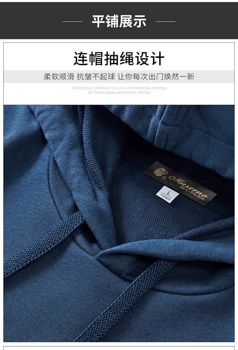 商品名称:曼西尔奴情侣同款纯色百搭连帽宽松休闲棉质套头卫衣23217015TM