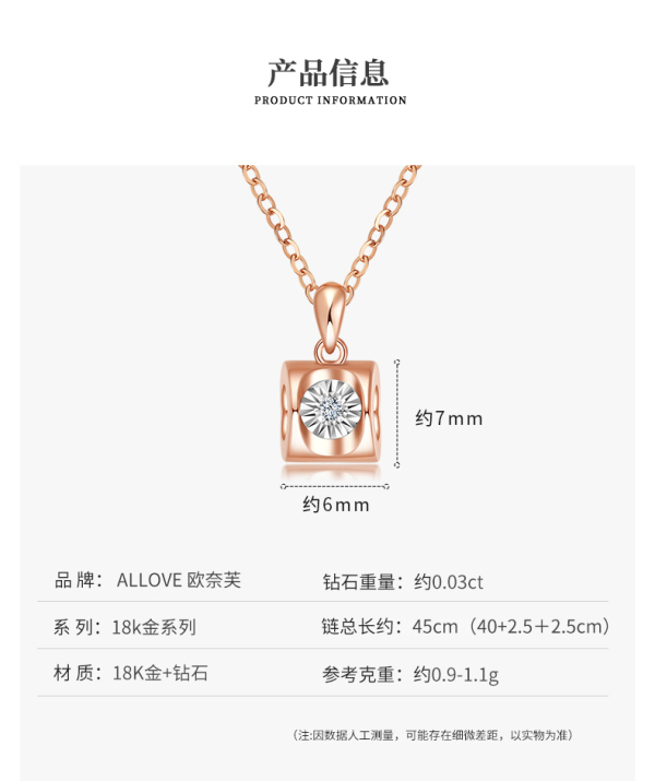 商品名称:ALLOVE 18K金钻石天使之吻项链GHD01415