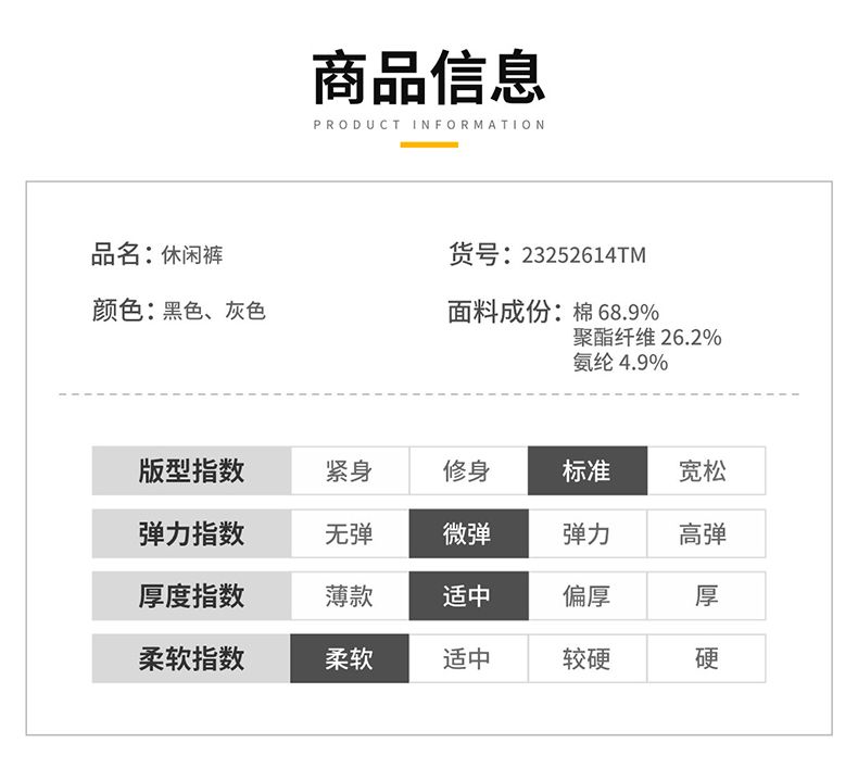 商品名称:曼西尔奴情侣同款棉质百搭修身休闲显瘦型男舒适休闲裤23252614TM