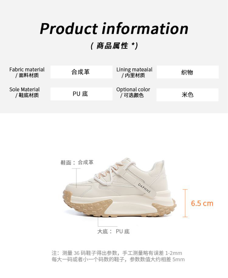 商品名称:【德训鞋女】春夏休闲鞋女舒适百搭通勤鞋潮流厚底鞋 818583