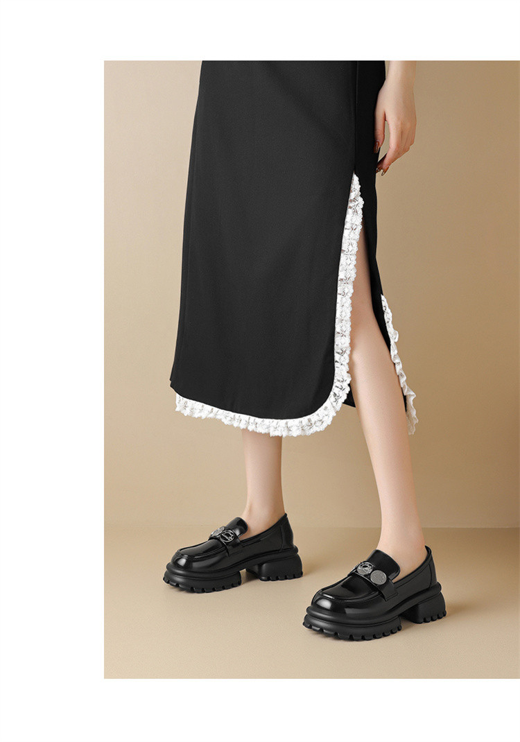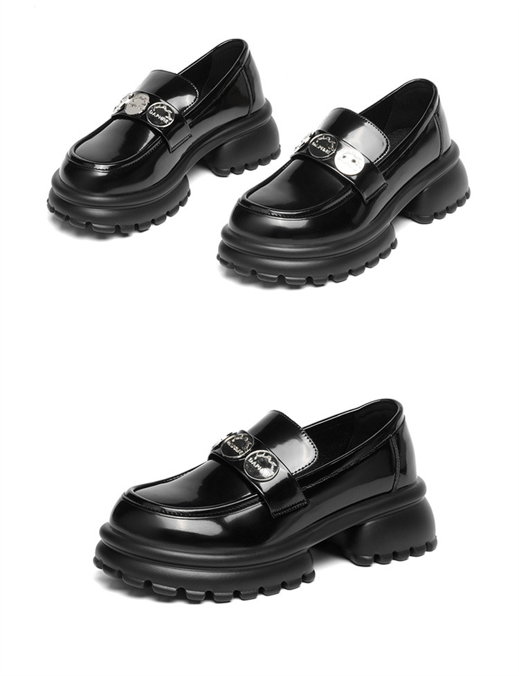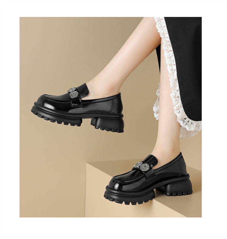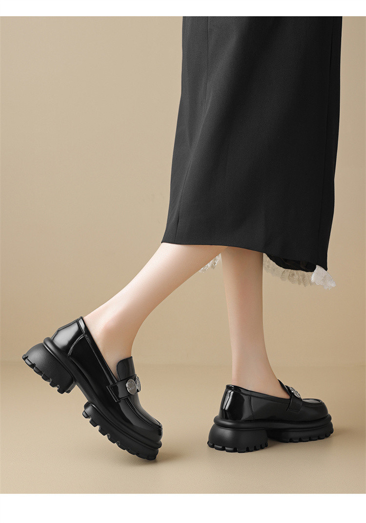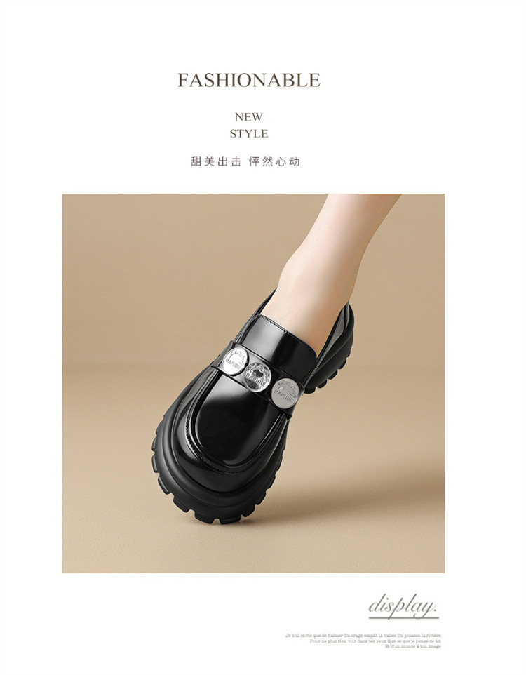 商品名称:夏季厚底乐福鞋英伦风一脚蹬女单鞋百搭JK制服鞋小个子增高女鞋 069975