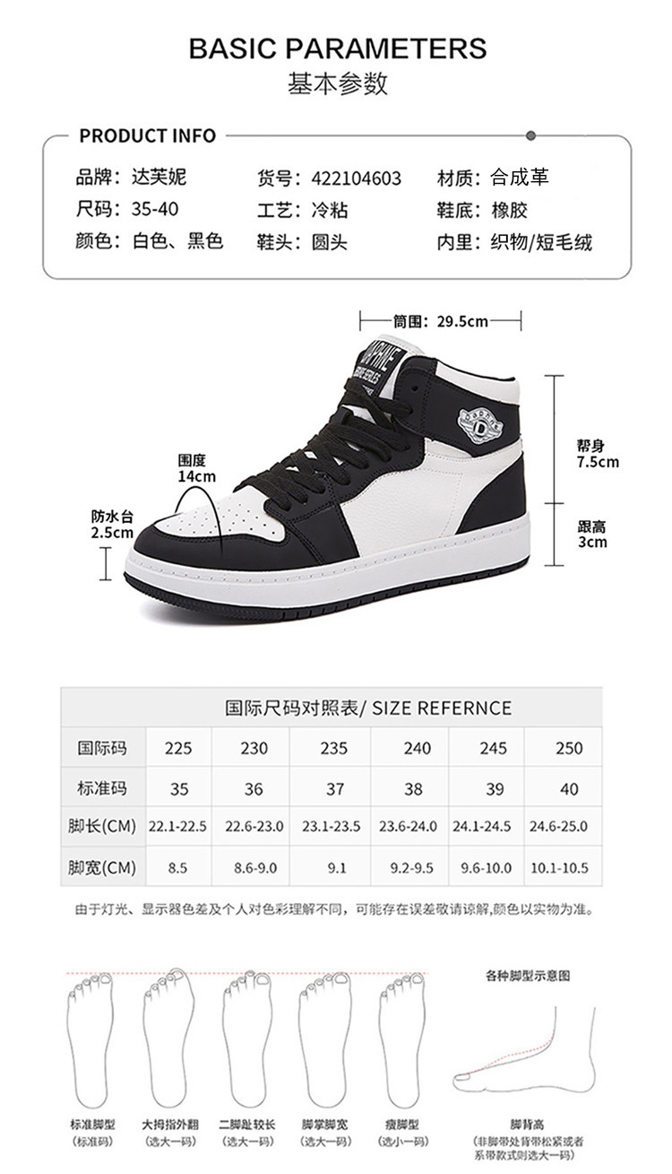 商品名称:【热卖潮鞋】高帮熊猫鞋夏季时尚小白鞋学院风厚底板鞋舒适休闲鞋 937623