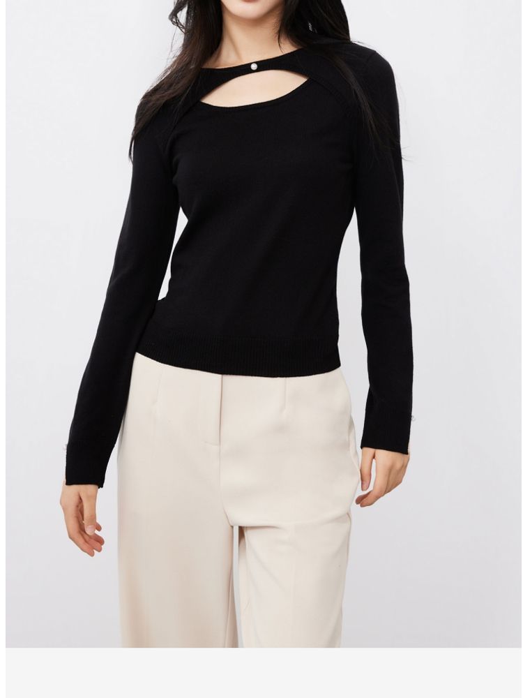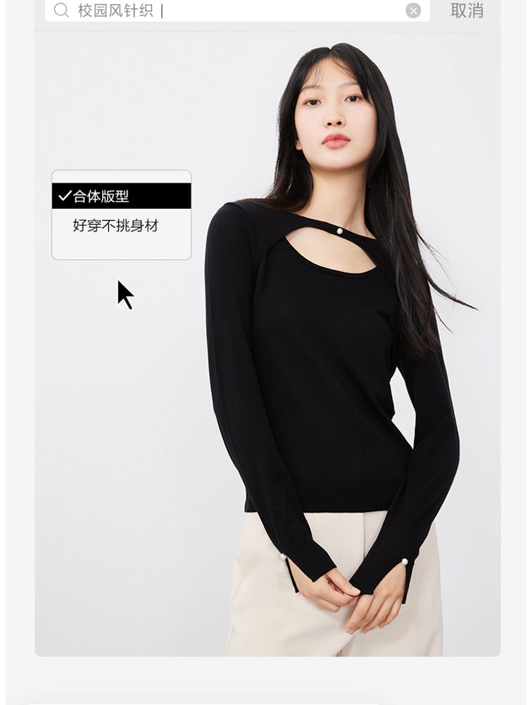 商品名称:优雅简约钉珠装饰镂空针织衫女气质百搭时尚春夏 042449