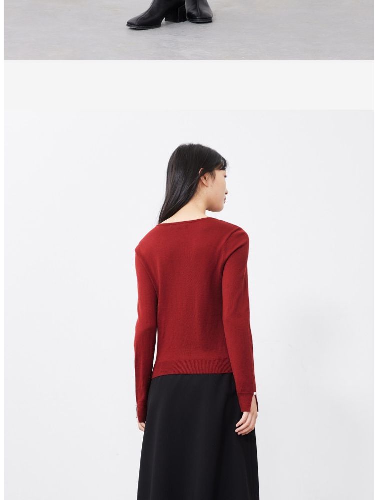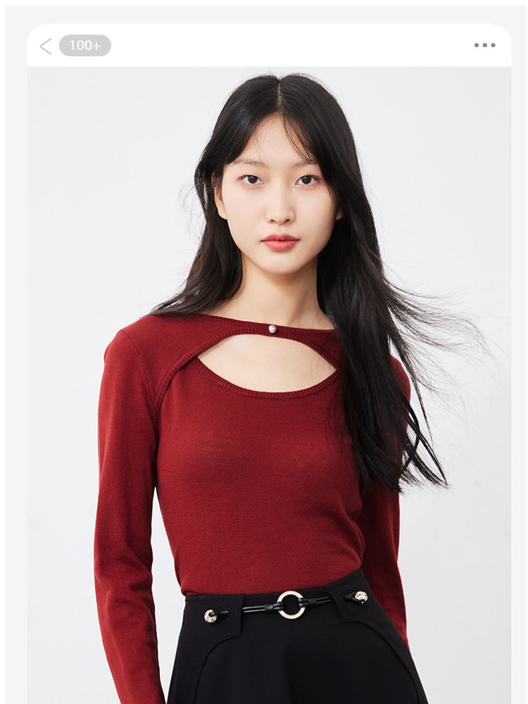 优雅简约钉珠装饰镂空针织衫女气质百搭时尚春夏 042449