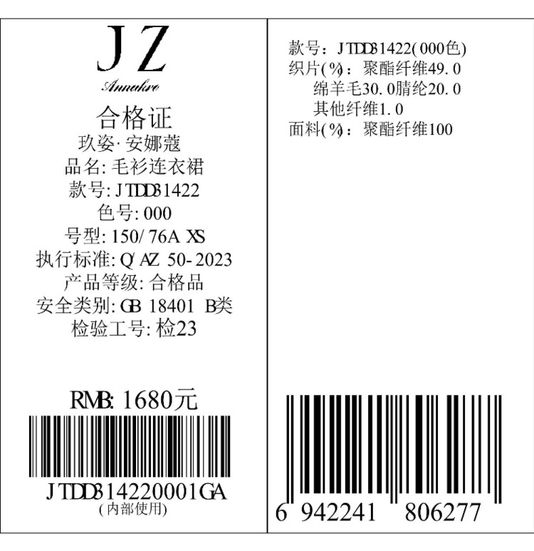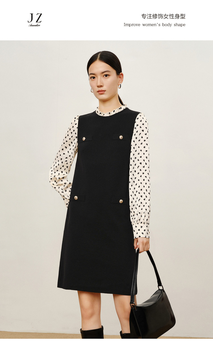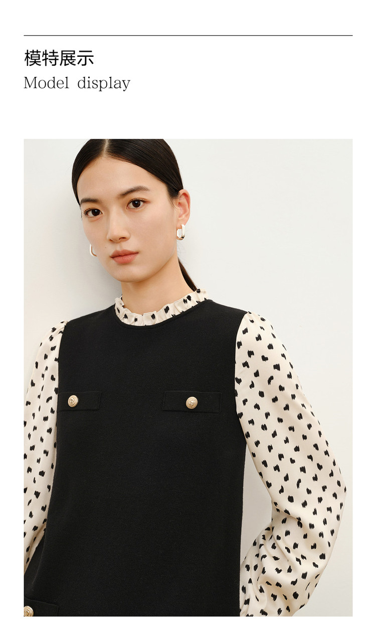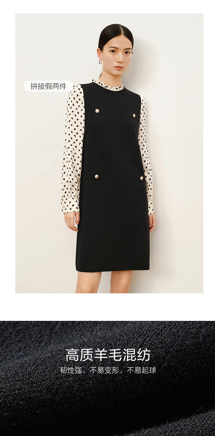 商品名称:玖姿旗下安娜蔻系列复古花边领中长毛衫连衣裙女冬季 689612