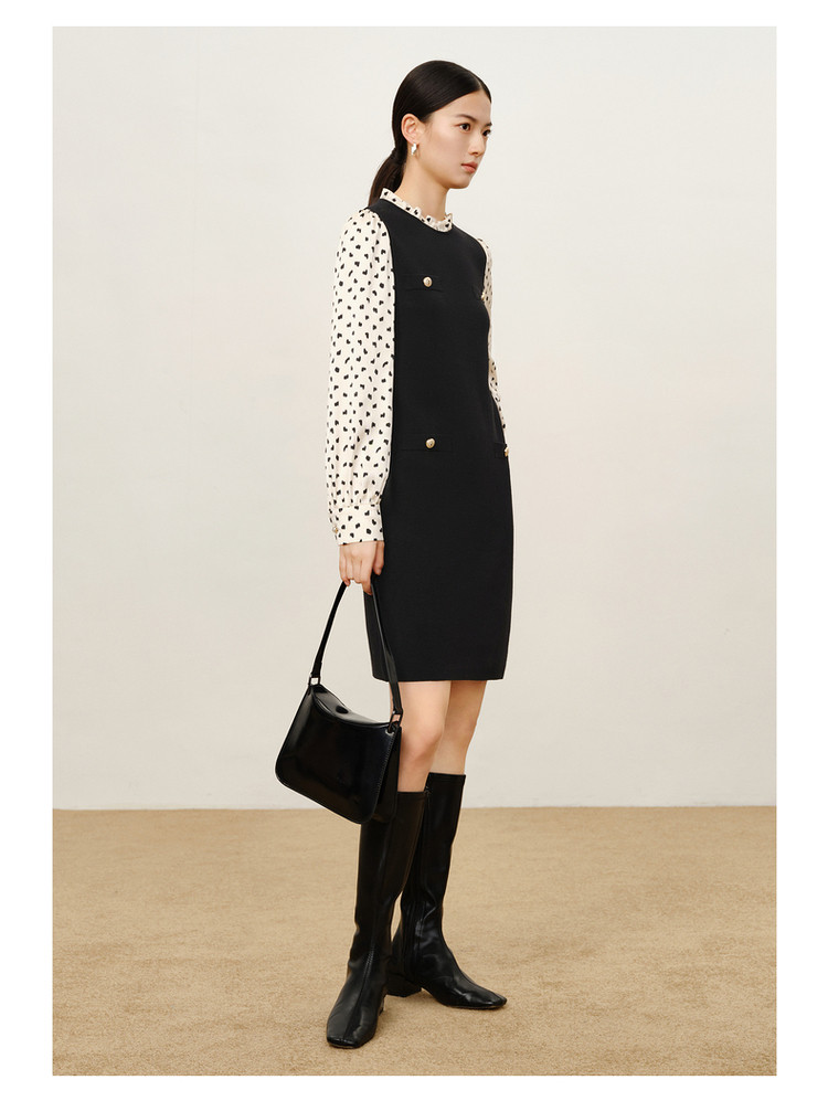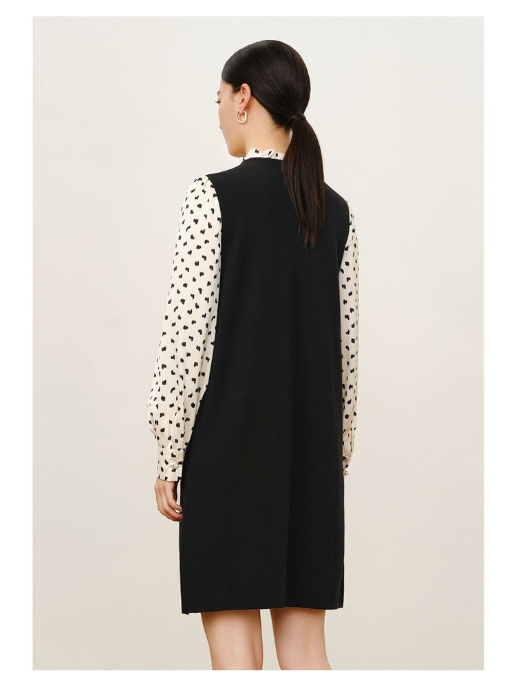 玖姿旗下安娜蔻系列复古花边领中长毛衫连衣裙女冬季 689612