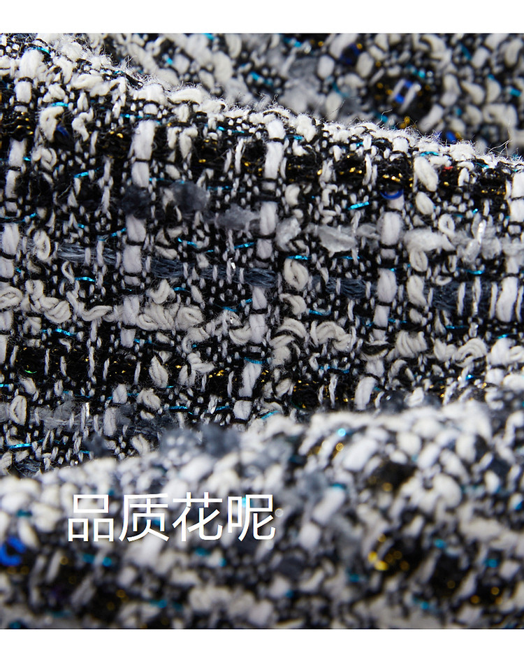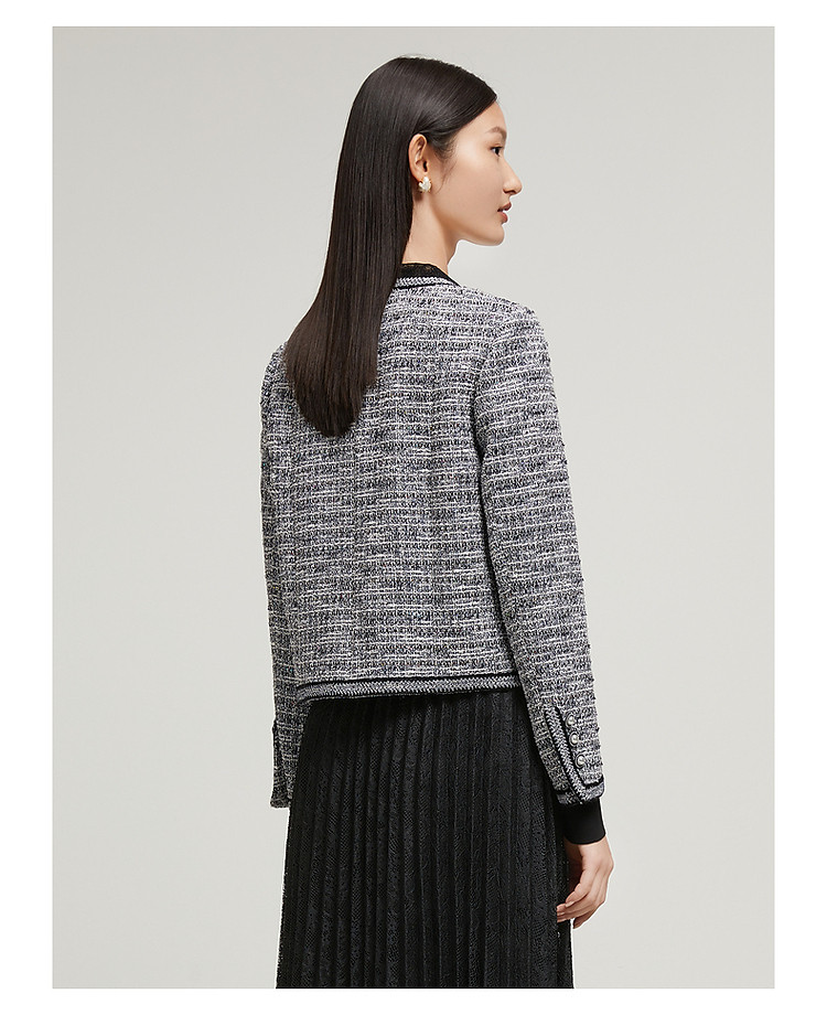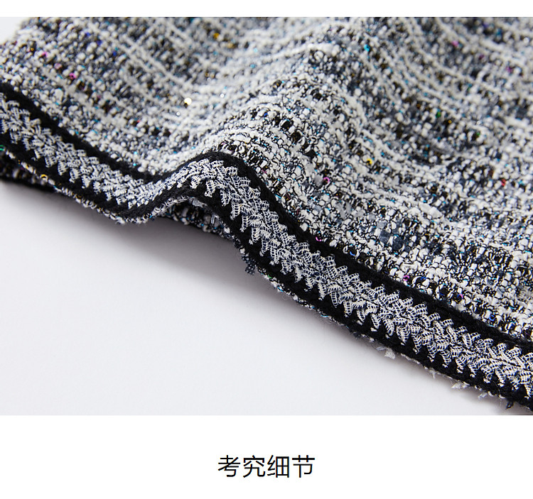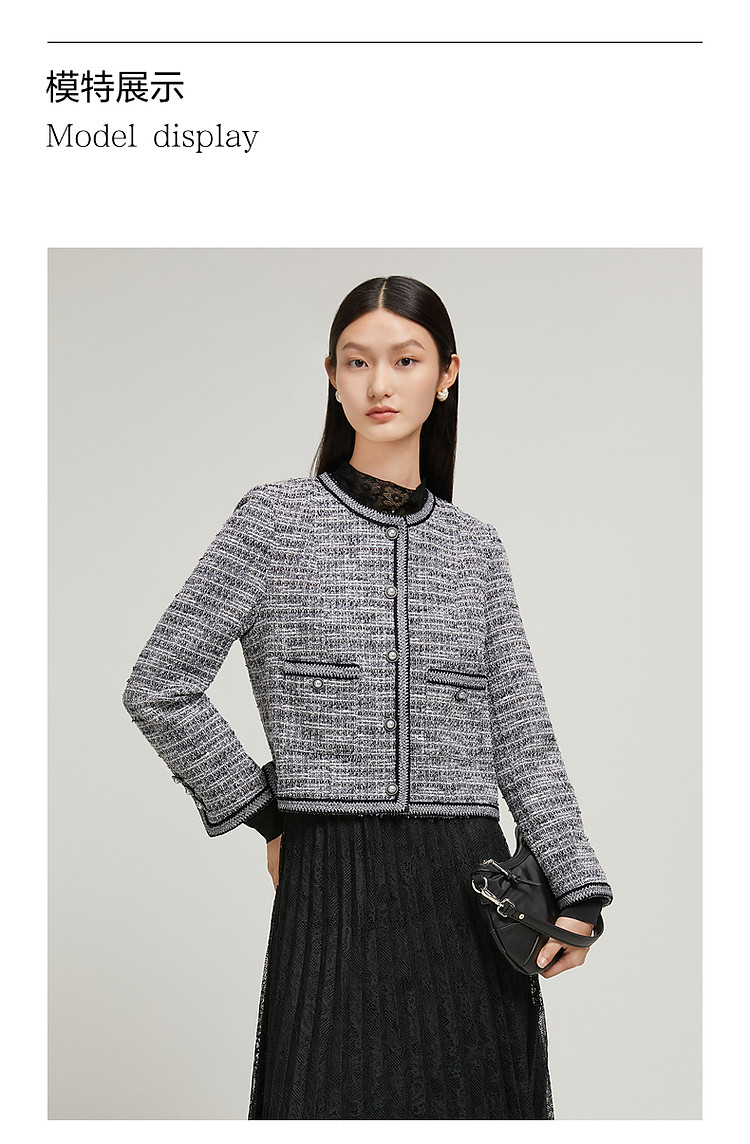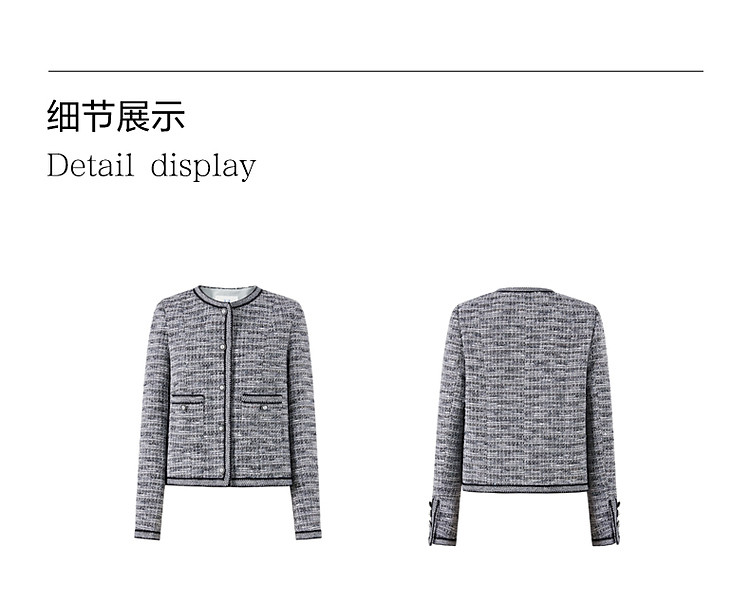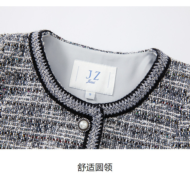 商品名称:JZ玖姿撞色圆领微闪珠片小香花呢女式外套 841420
