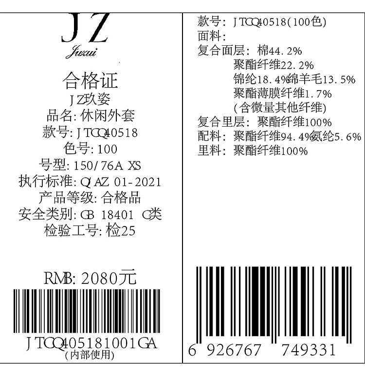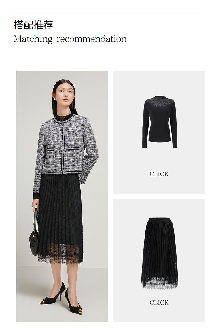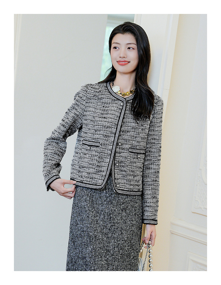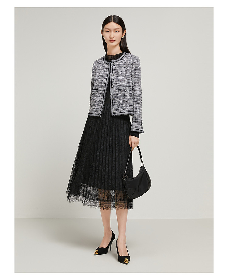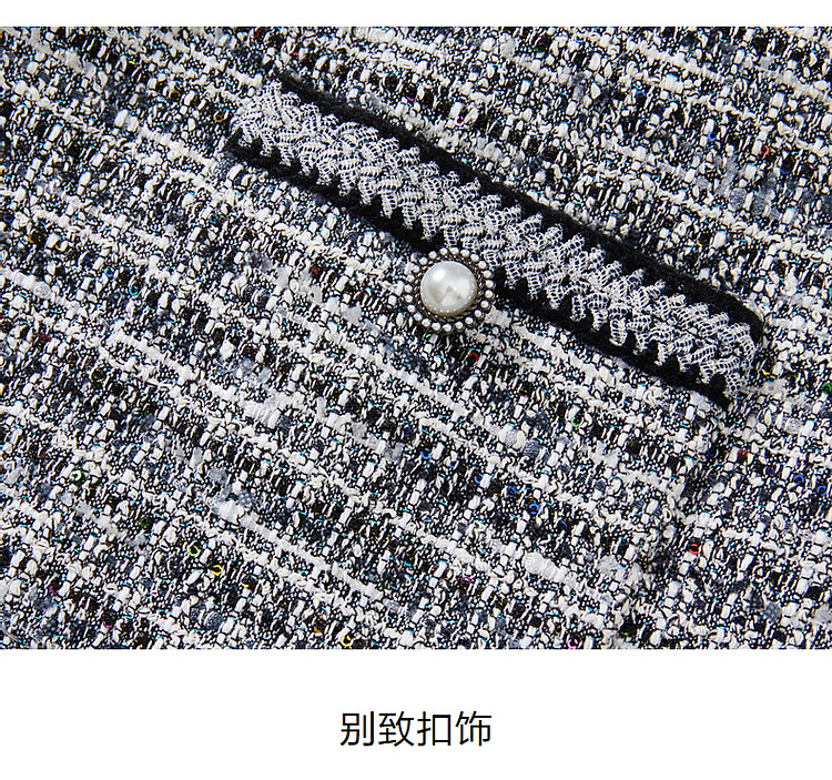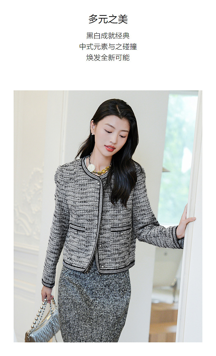 商品名称:JZ玖姿撞色圆领微闪珠片小香花呢女式外套 841420