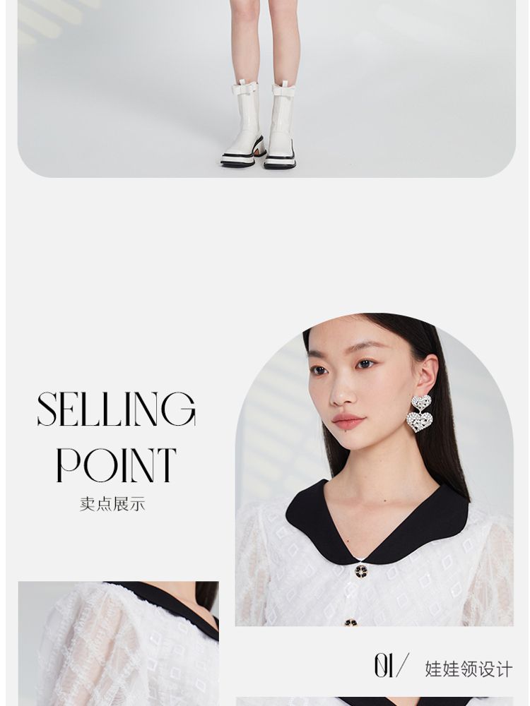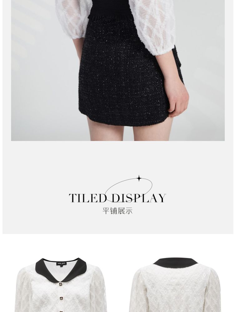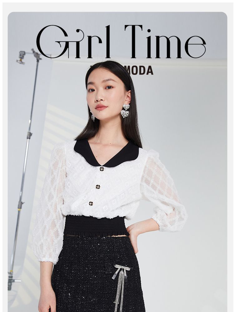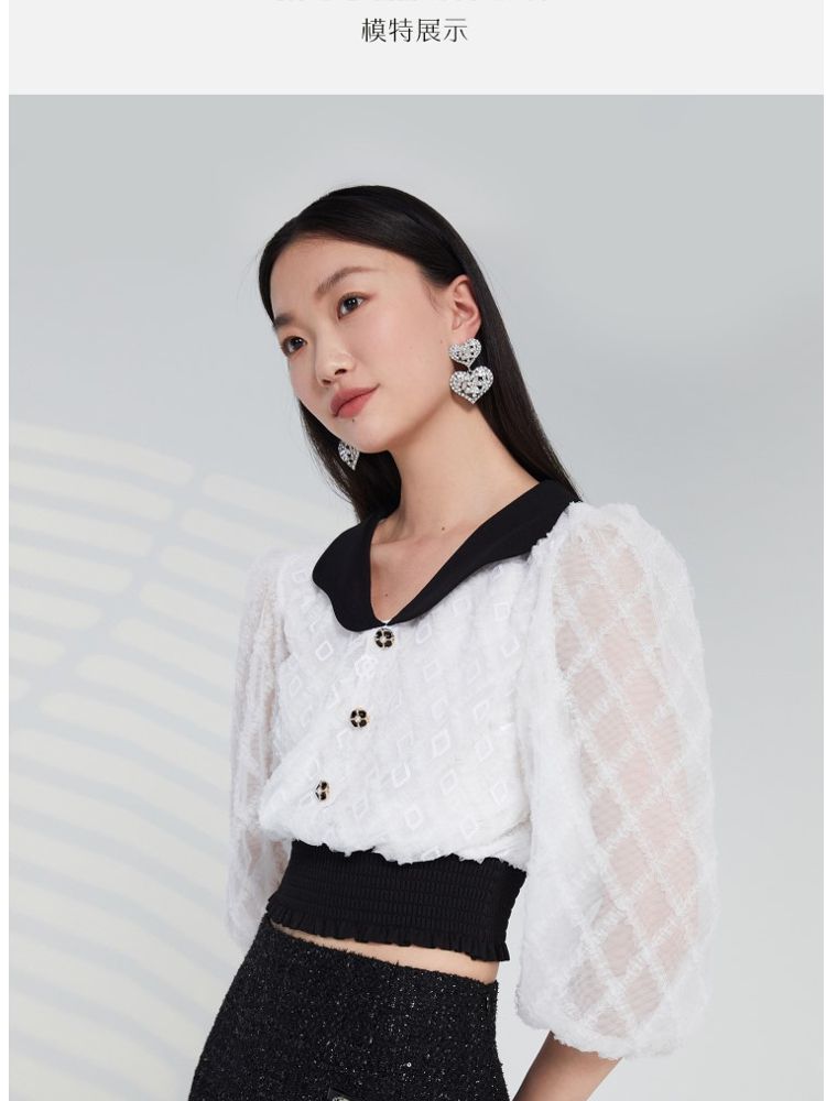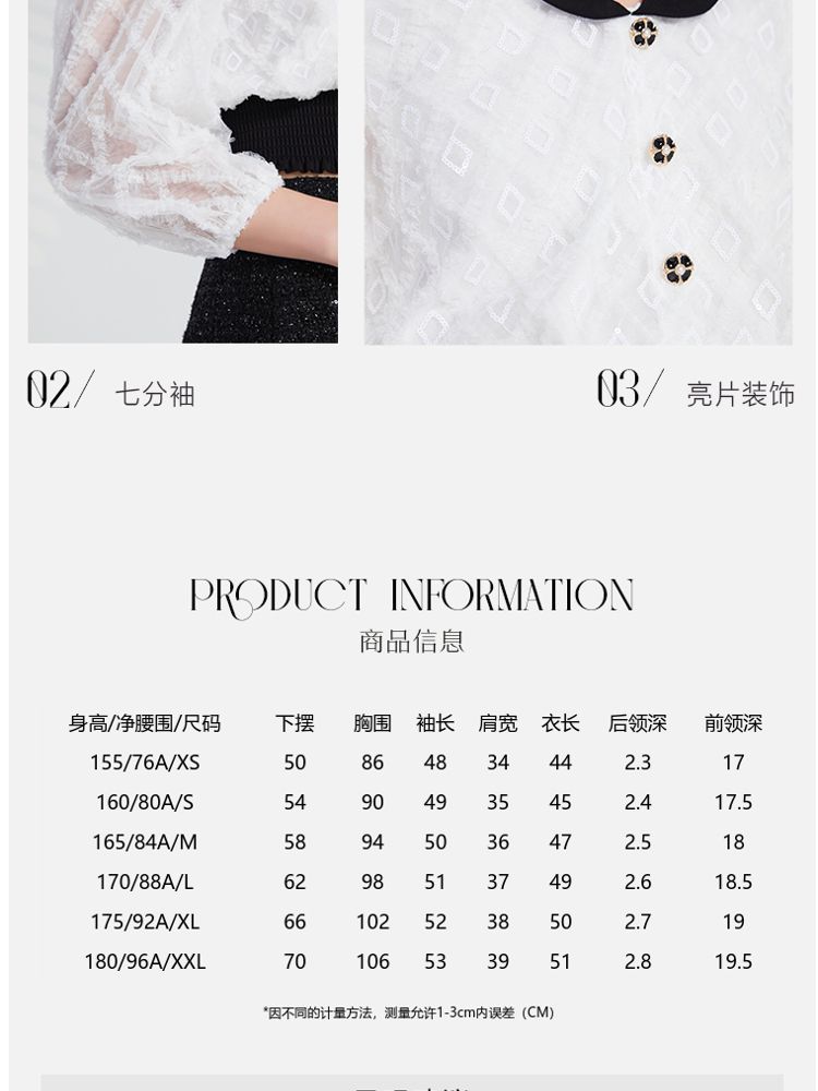 商品名称:【亮片装饰】春秋专柜款复古娃娃领蕾丝T恤衬衫女 251281