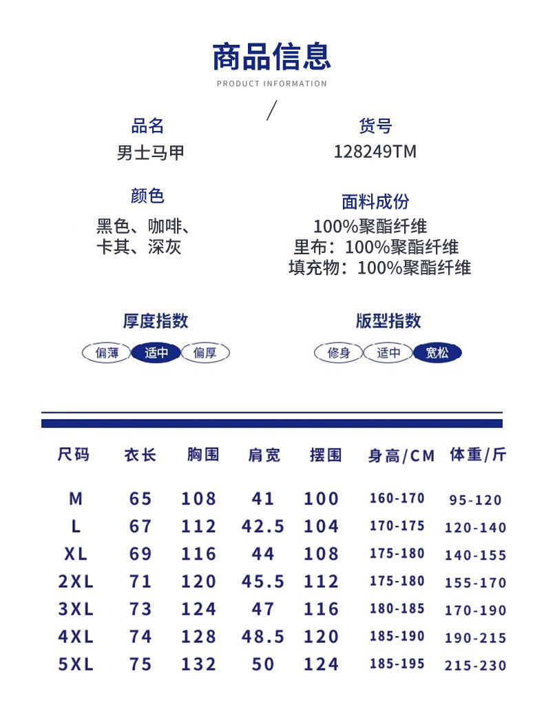 商品名称:曼西尔奴男士立领纯色简约拉链休闲百搭保暖马甲128249TM