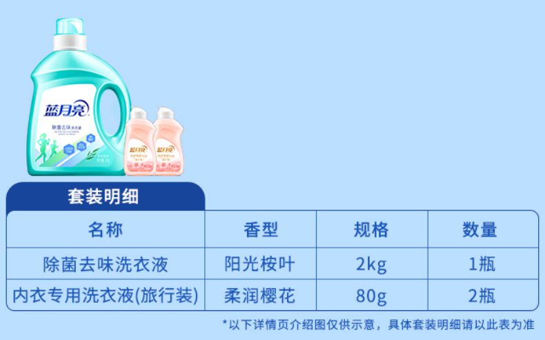 商品名称:蓝月亮除菌洗衣液组合 除菌洗衣液2kg+内衣洗衣液80g*2