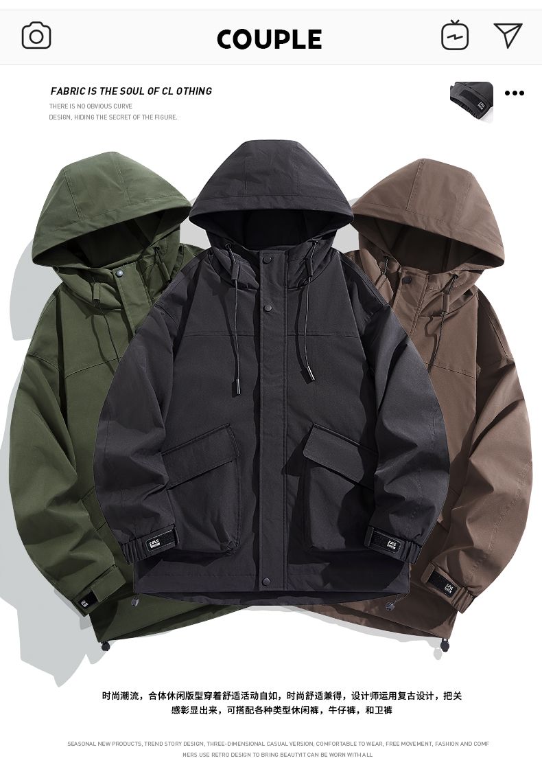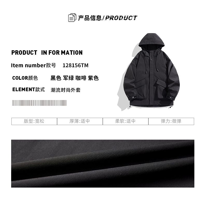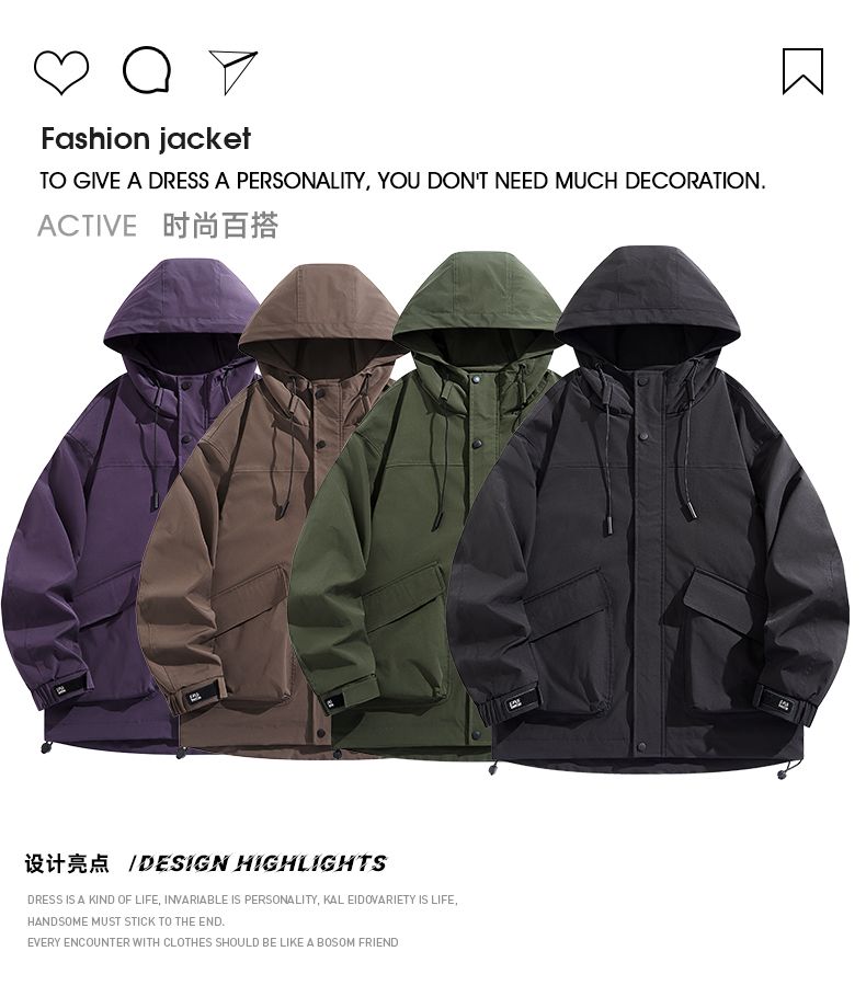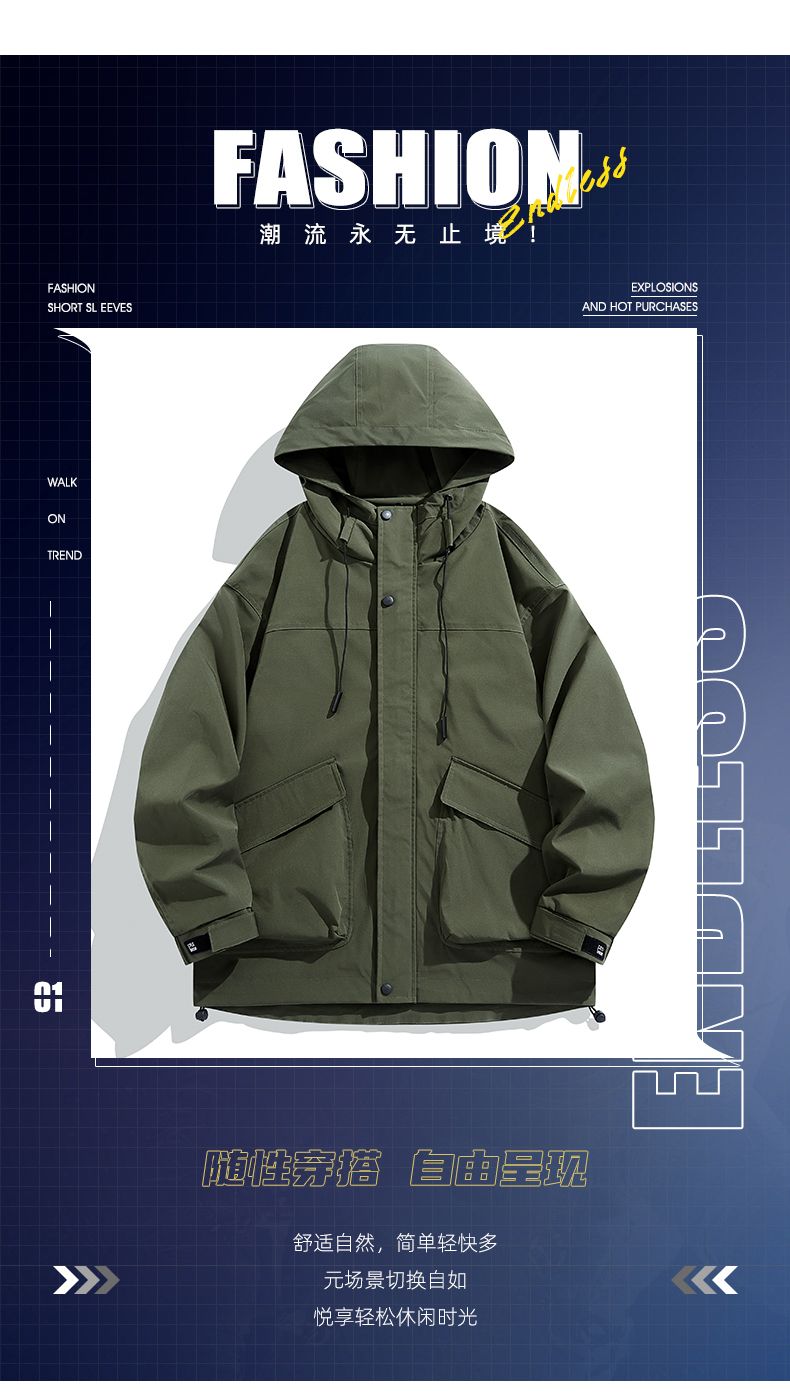 商品名称:曼西尔奴男士潮流休闲工装复古风合体百搭连帽夹克128156TM