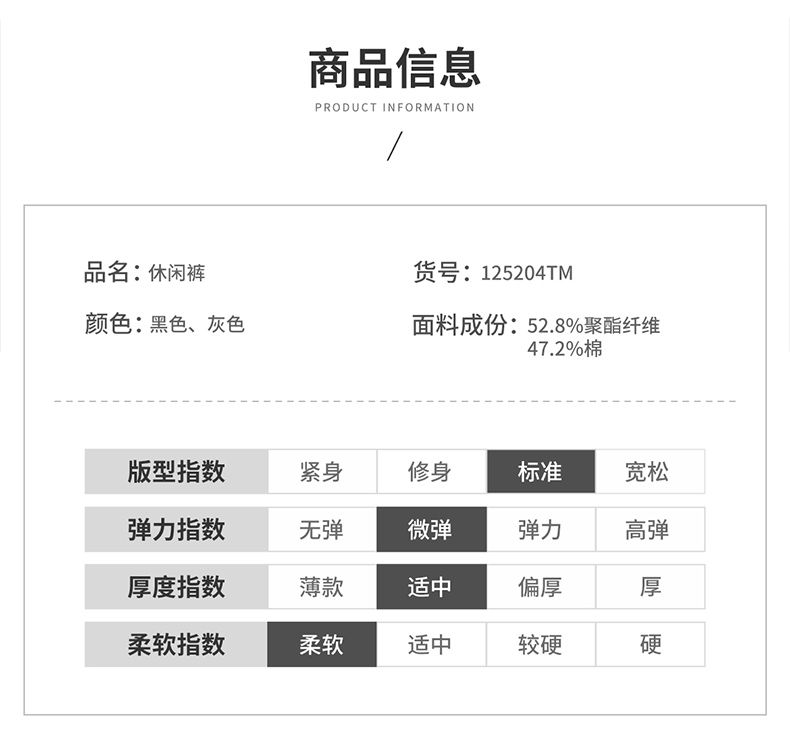 商品名称:曼西尔奴男士日常通勤休闲运动风束脚显瘦显高百搭休闲裤125204TM