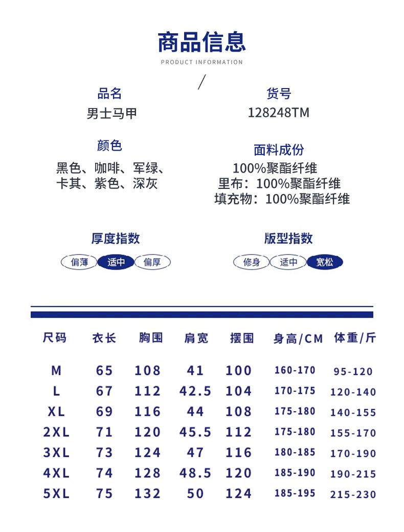商品名称:曼西尔奴男士保暖休闲立领外穿通勤休闲居家百搭马甲128248TM