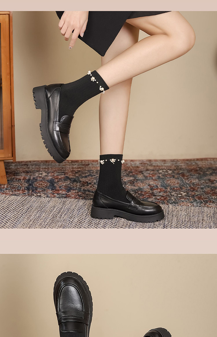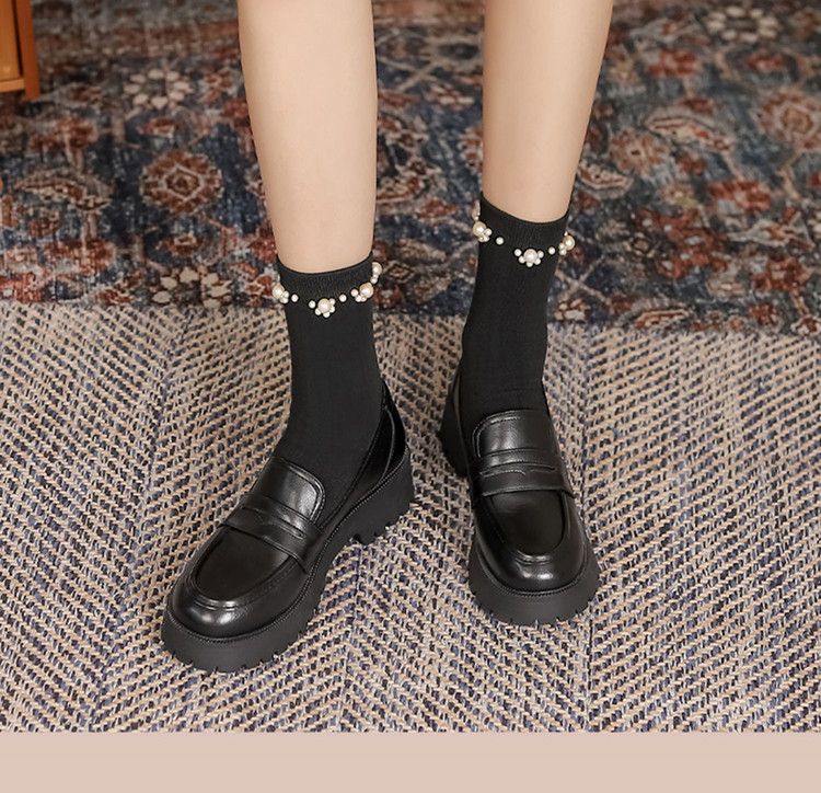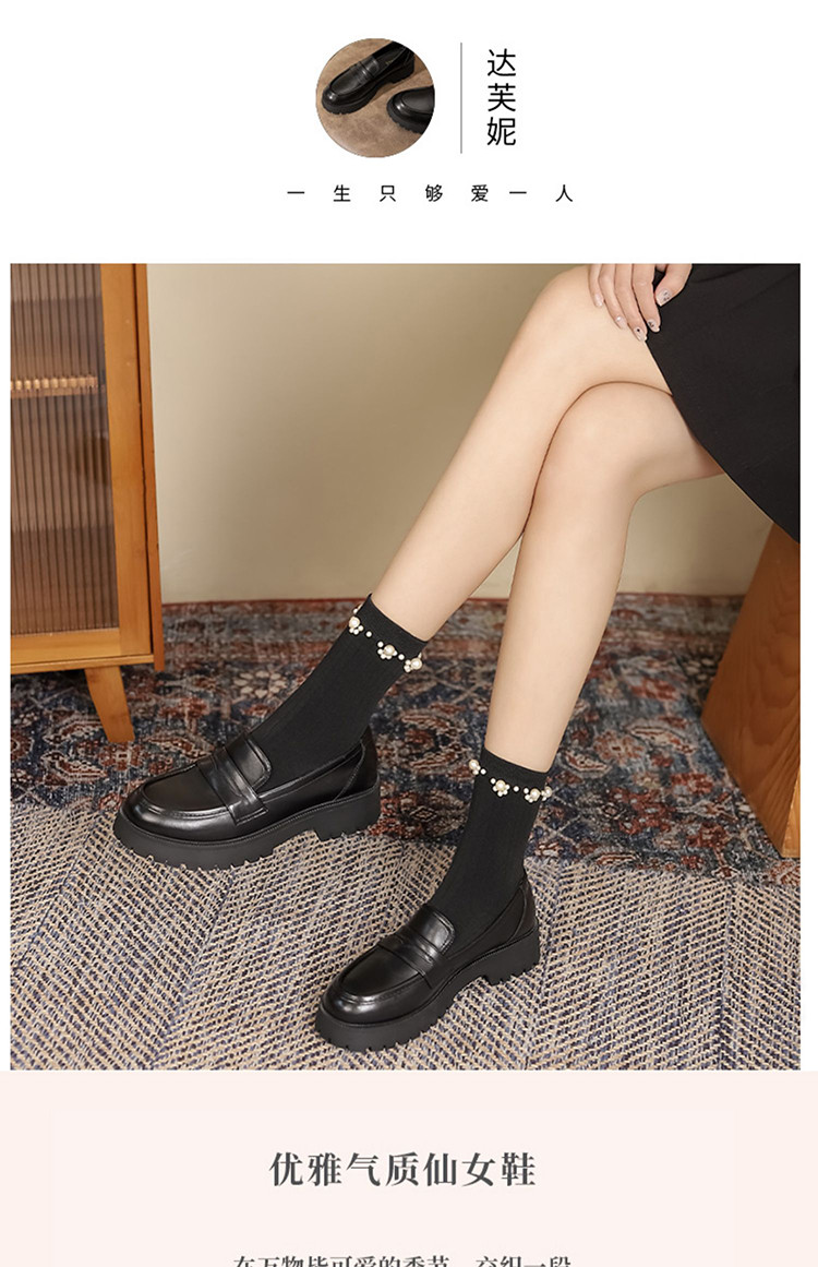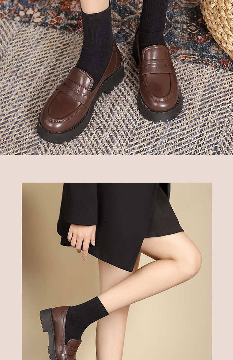 商品名称:复古乐福鞋女春秋简约休闲英伦小皮鞋一脚蹬通勤单鞋女 811610