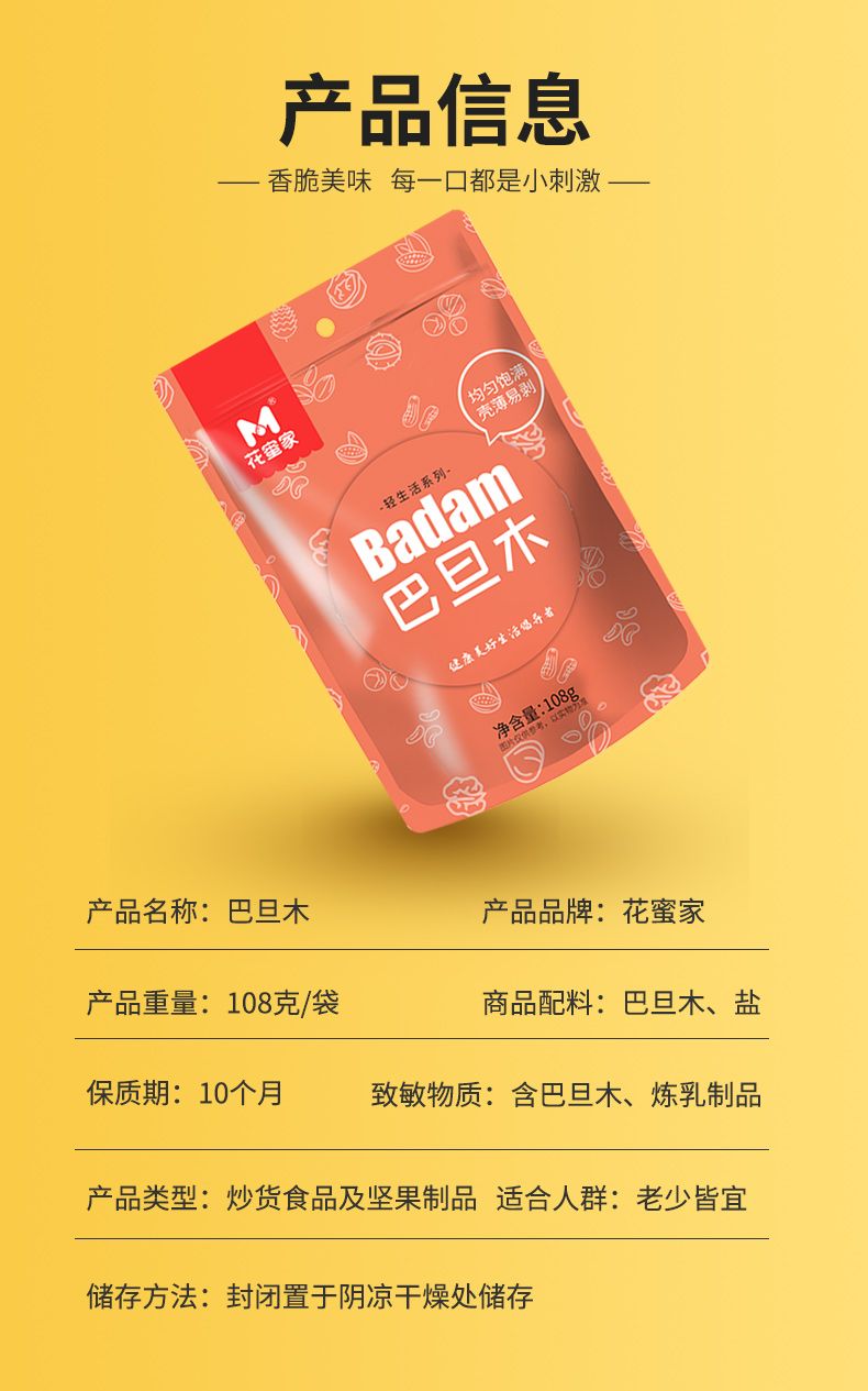 商品名称:花蜜家巴旦木(薄壳) 108g/袋