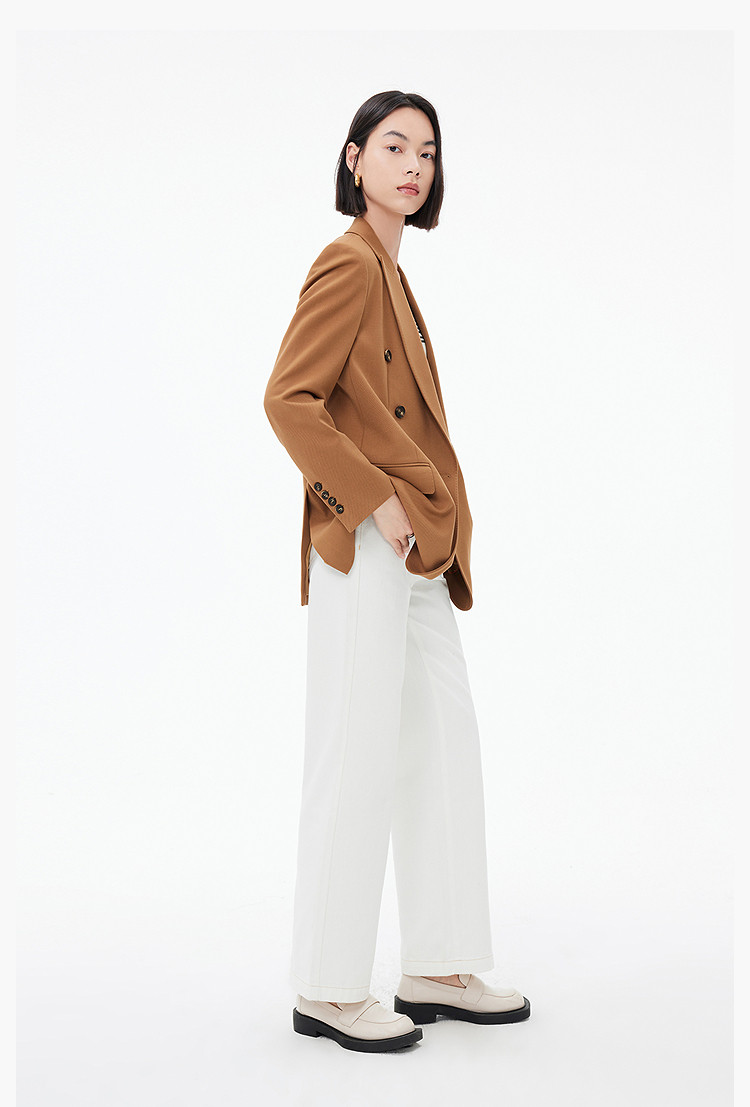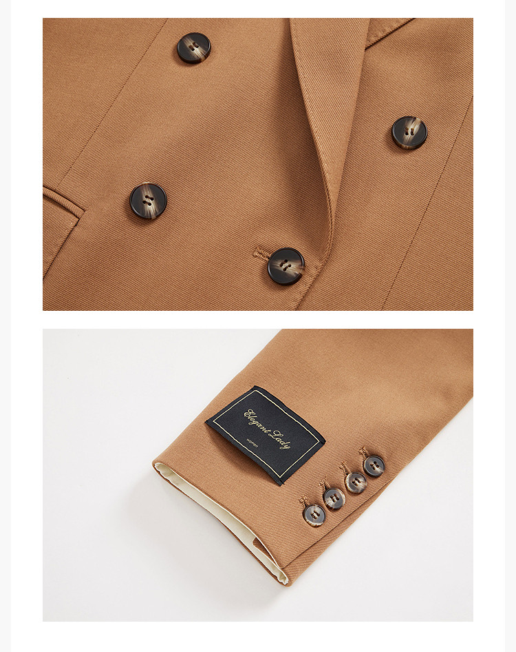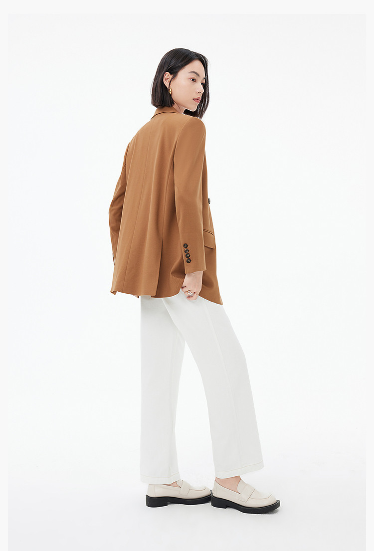 春季款含绵羊毛都市通勤宽松复古双排扣棕色西装外套 104411