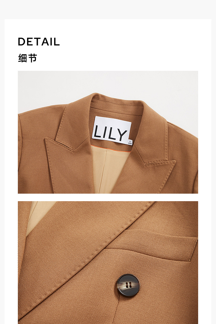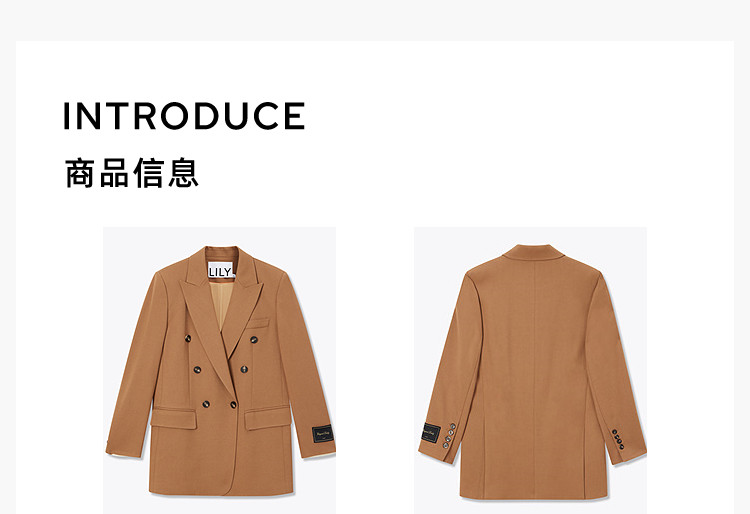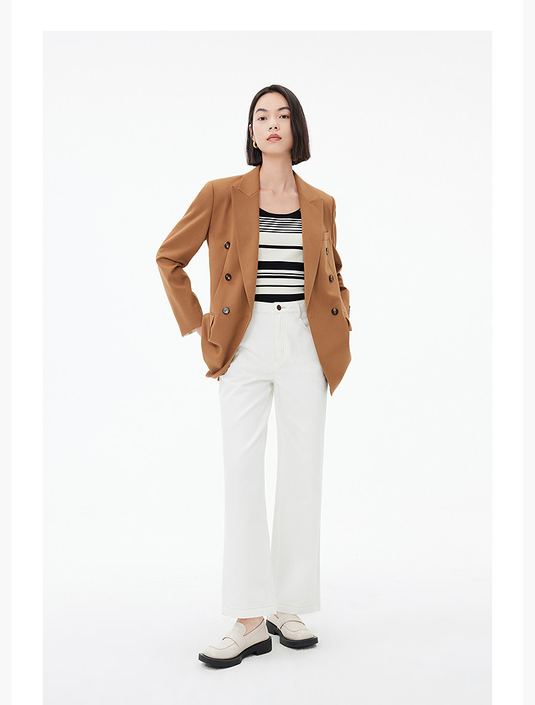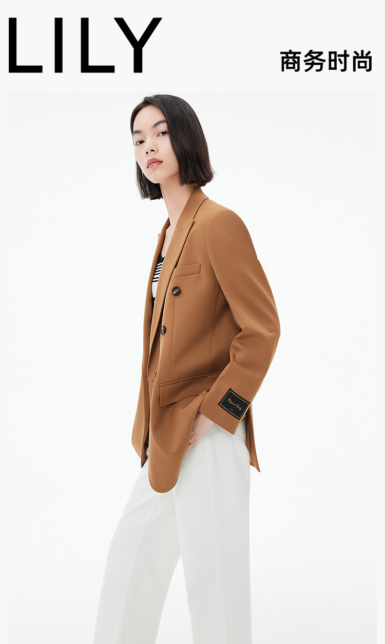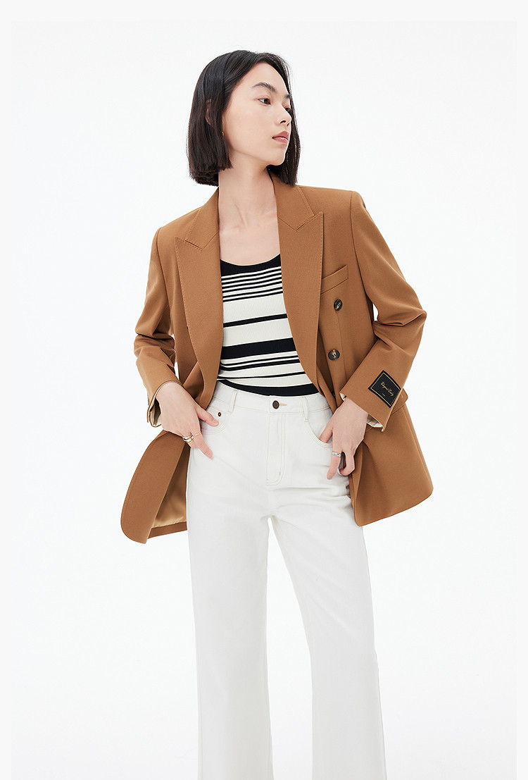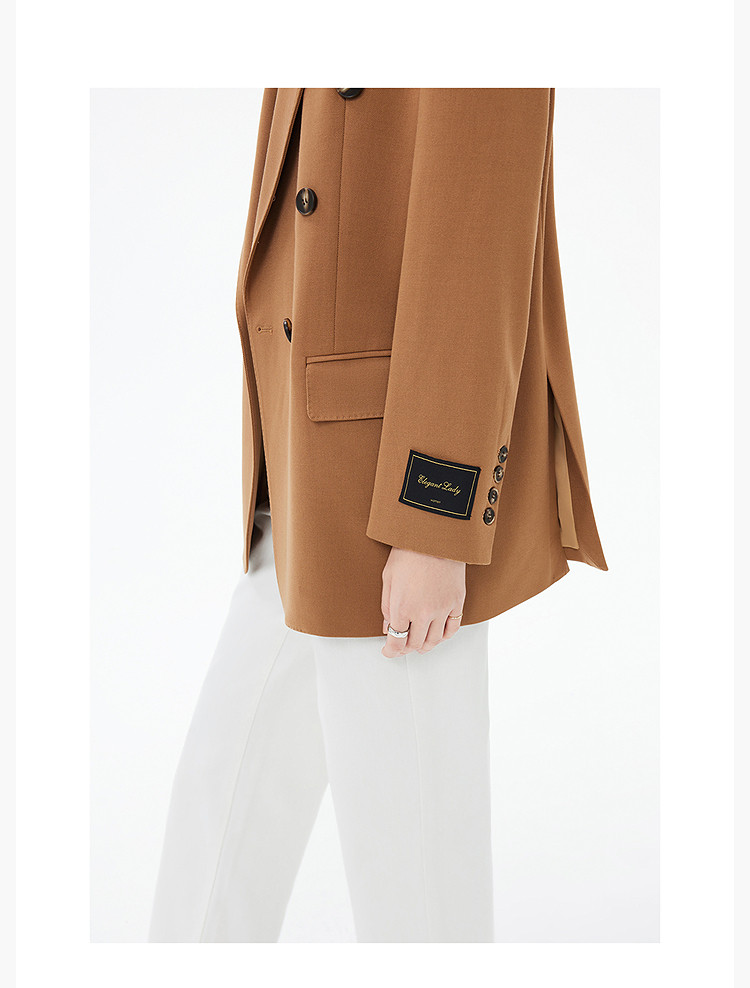 商品名称:春季款含绵羊毛都市通勤宽松复古双排扣棕色西装外套 104411