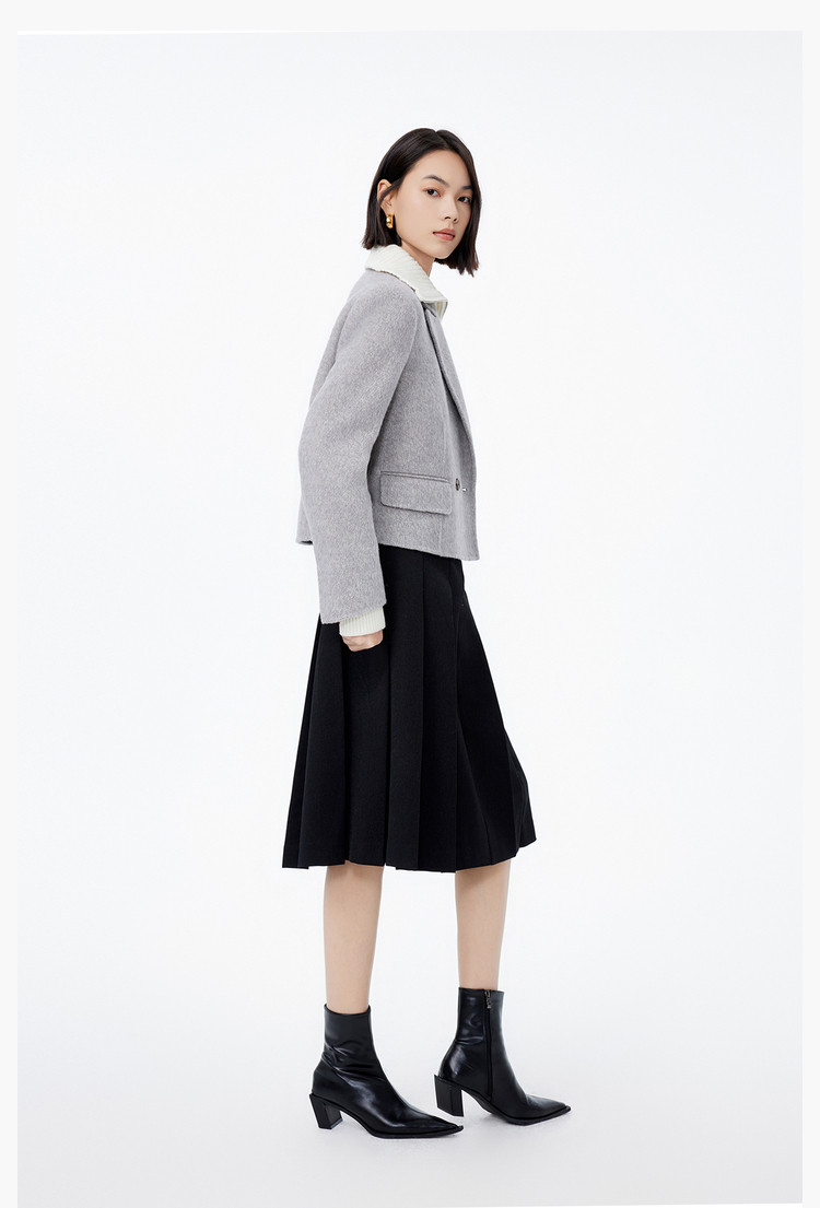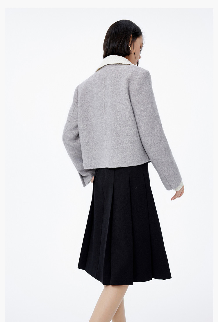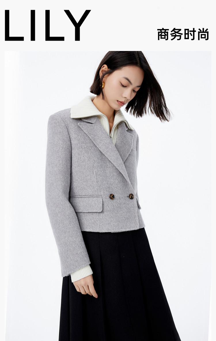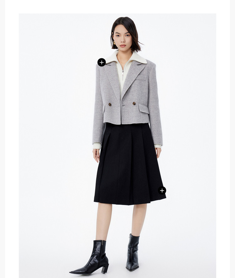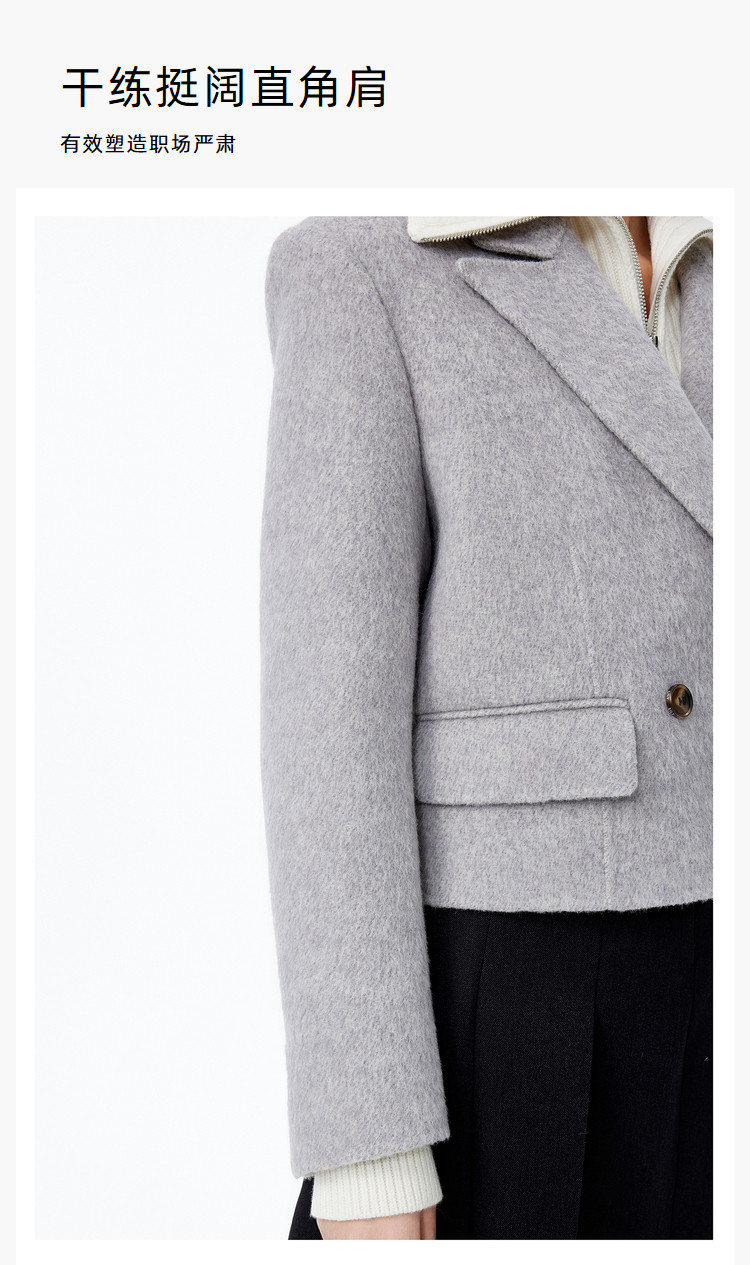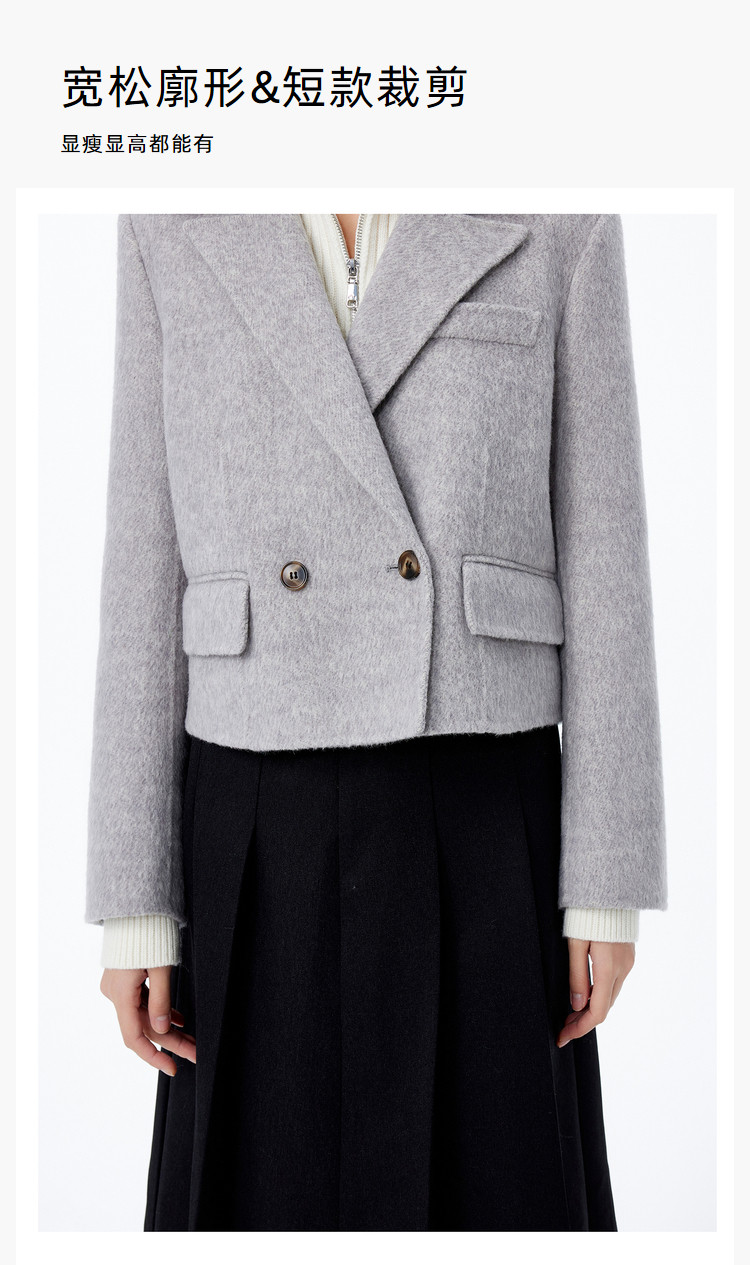 冬季绵羊毛复古双排扣时尚短款通勤毛呢外套大衣女 039771