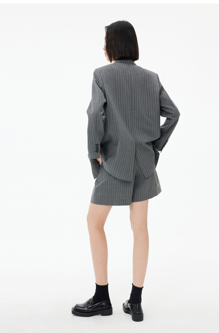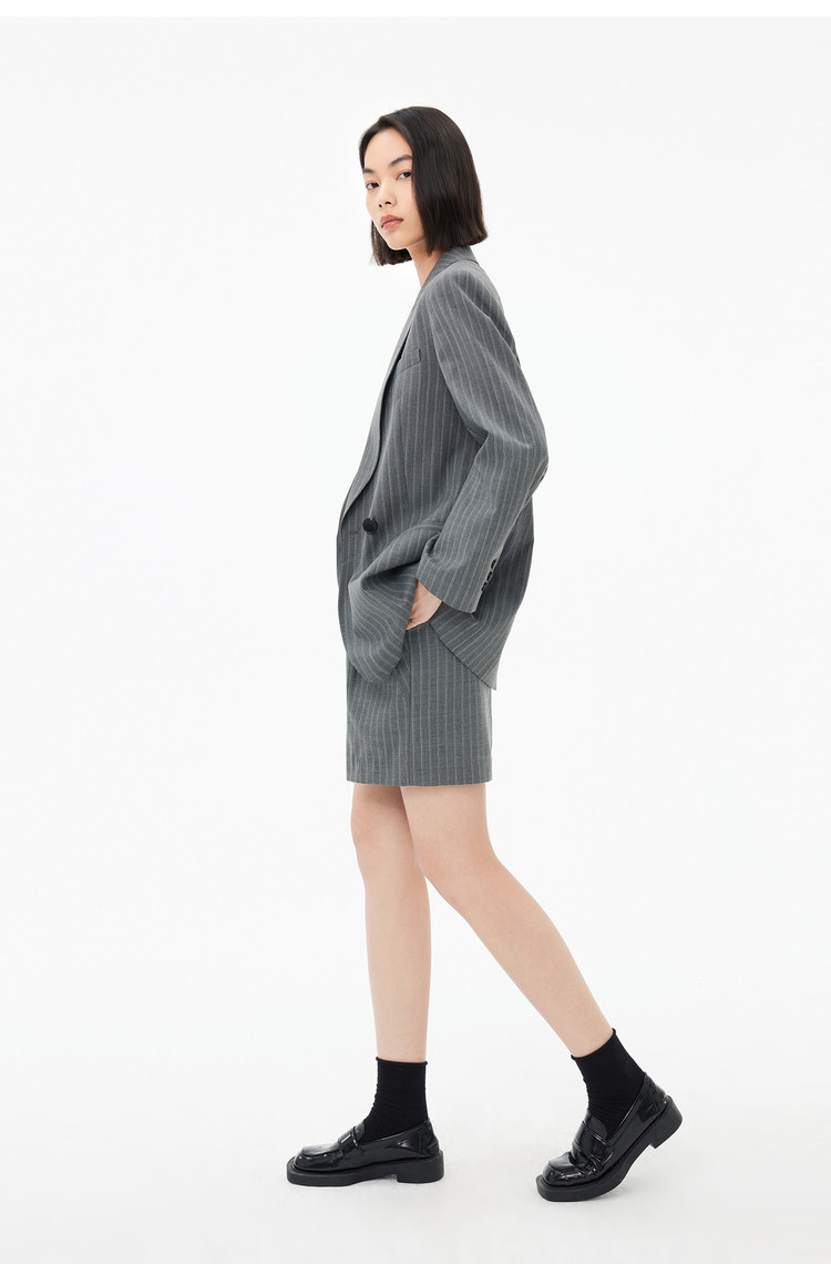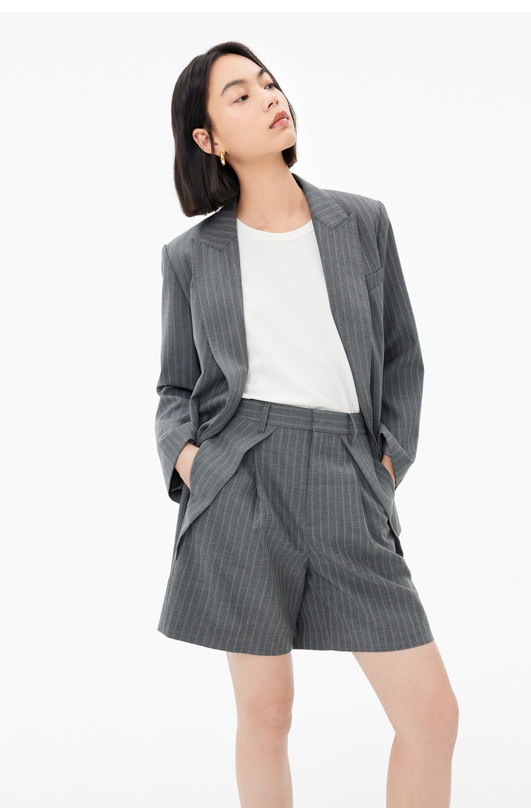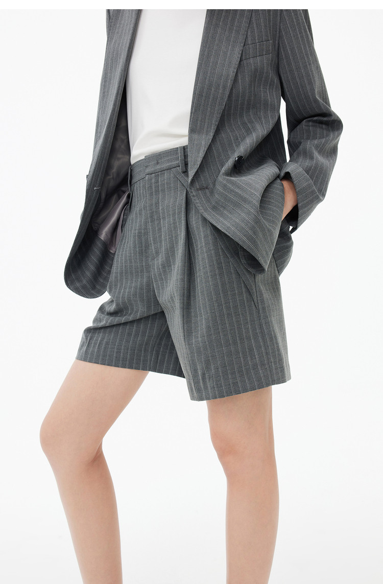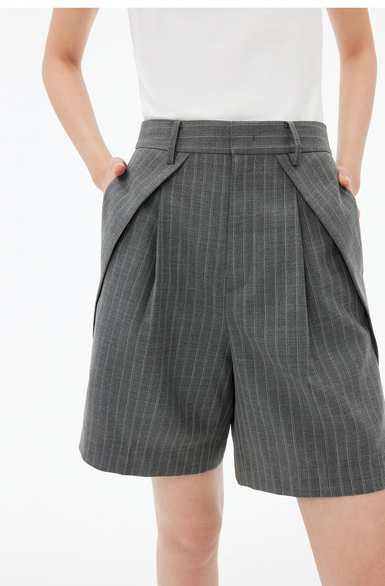 春季裤子女季绵羊毛复古时尚条纹高腰显瘦A字西装休闲短裤 154843