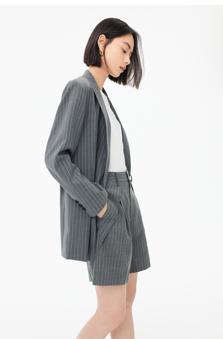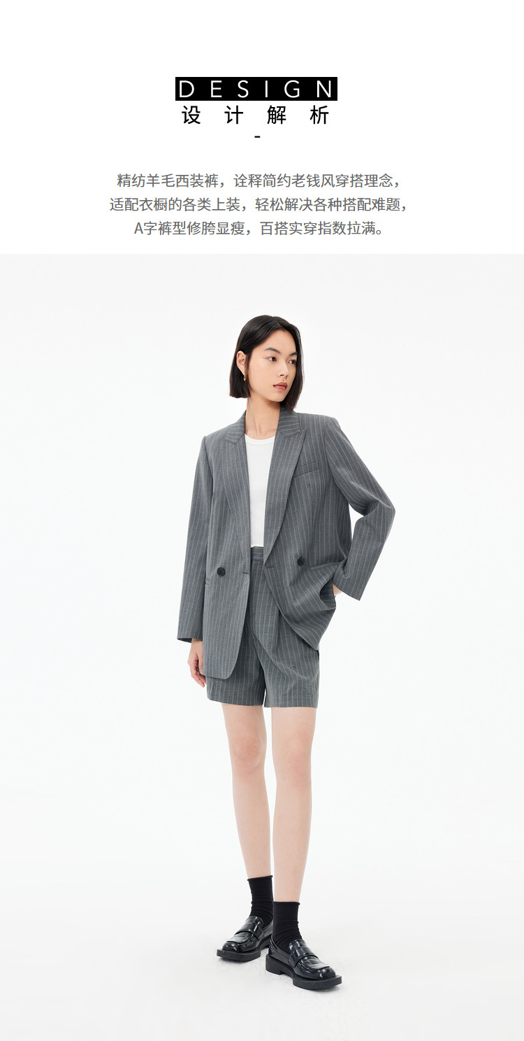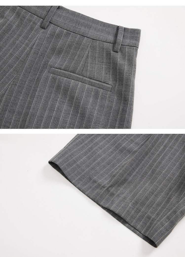 商品名称:春季裤子女季绵羊毛复古时尚条纹高腰显瘦A字西装休闲短裤 154843