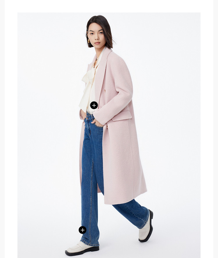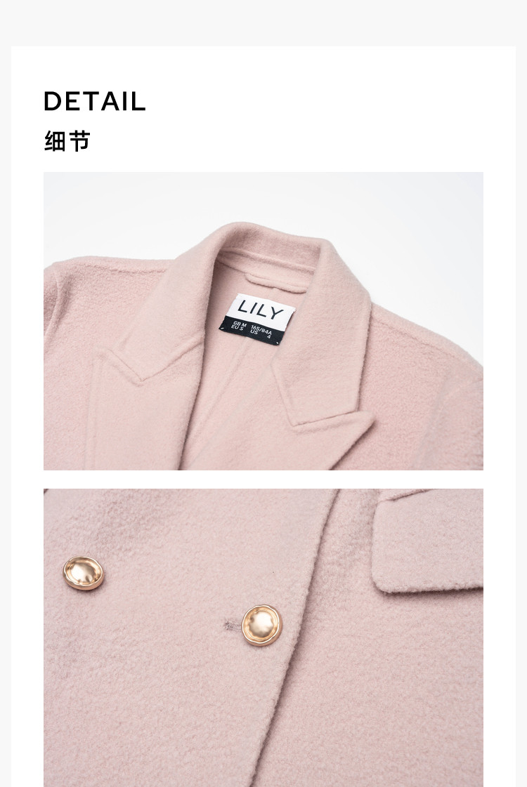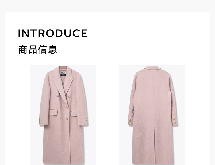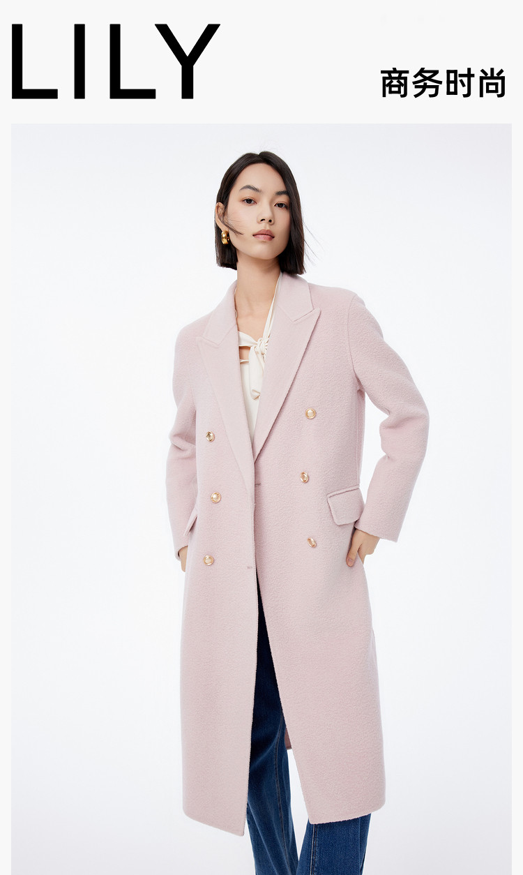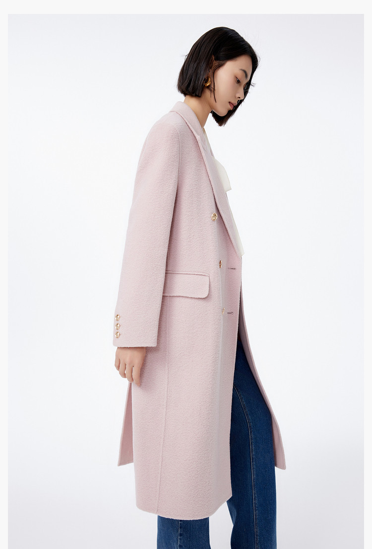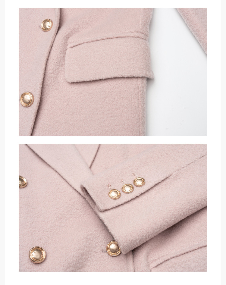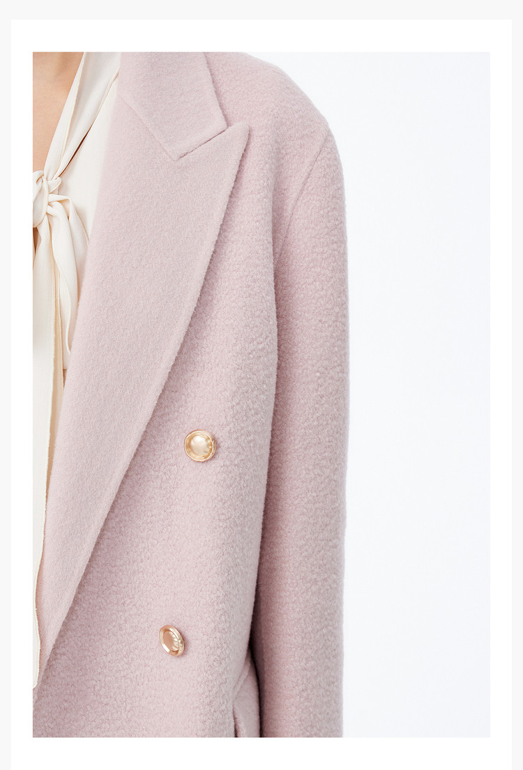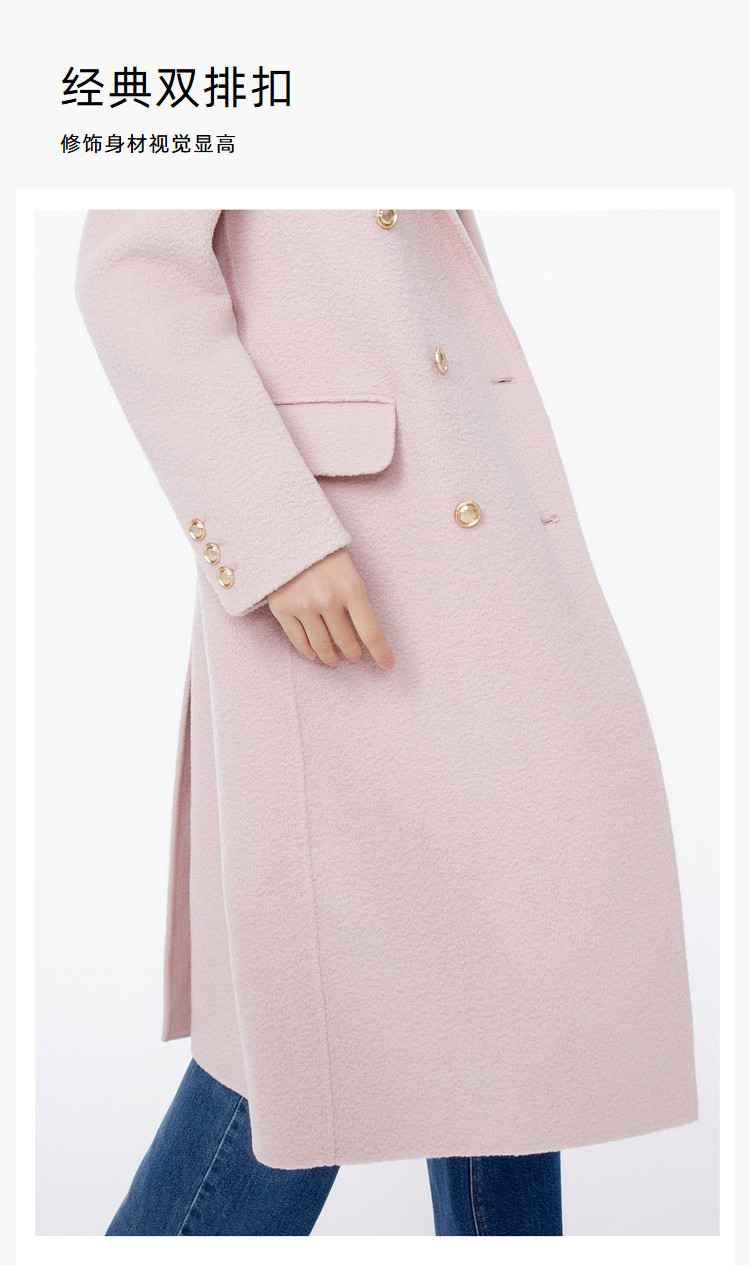 商品名称:冬季绵羊毛复古双排扣气质通勤长款毛呢外套大衣女 035675