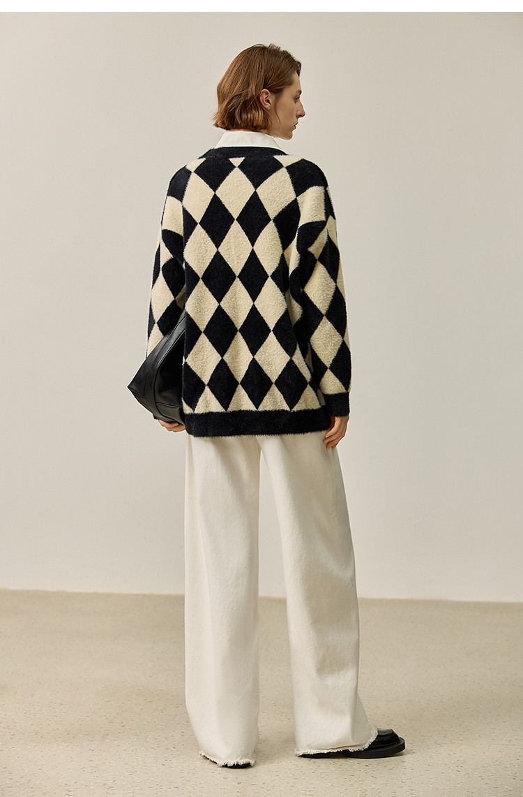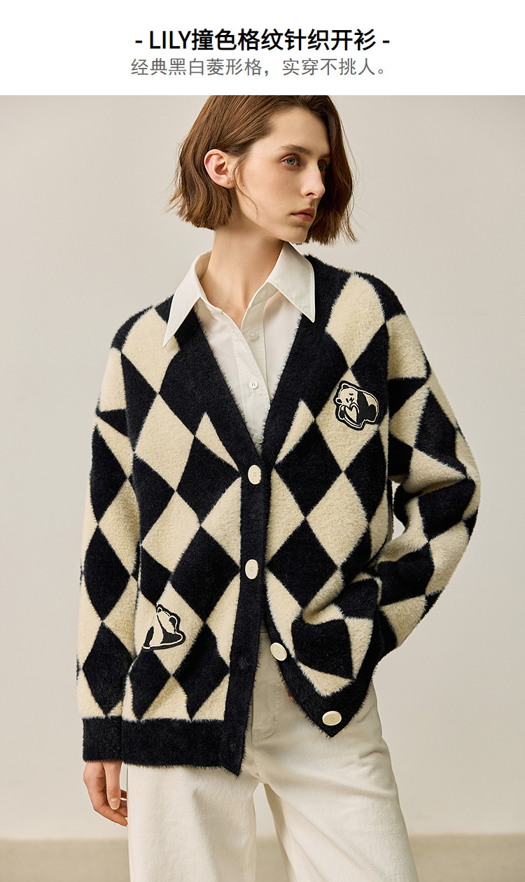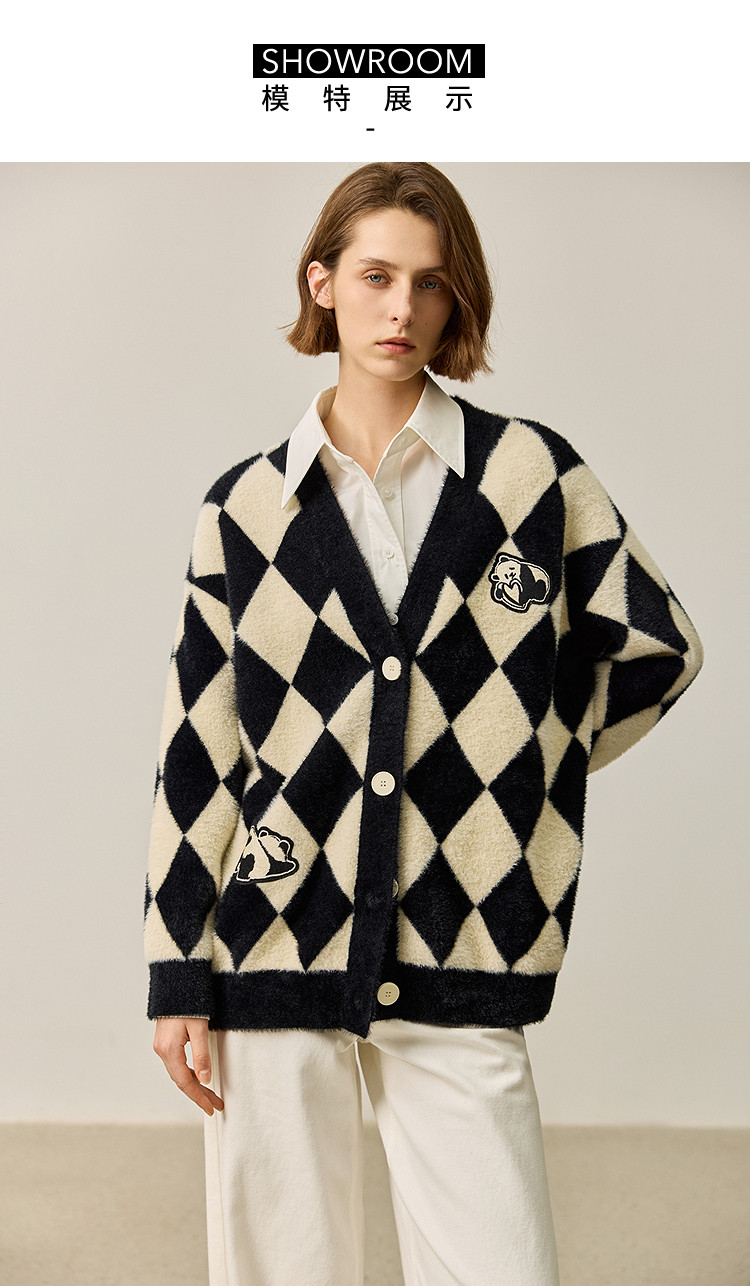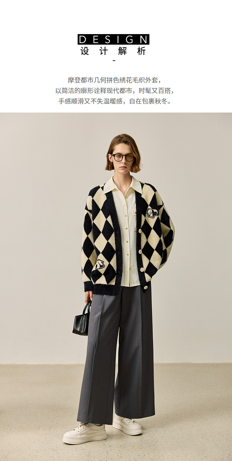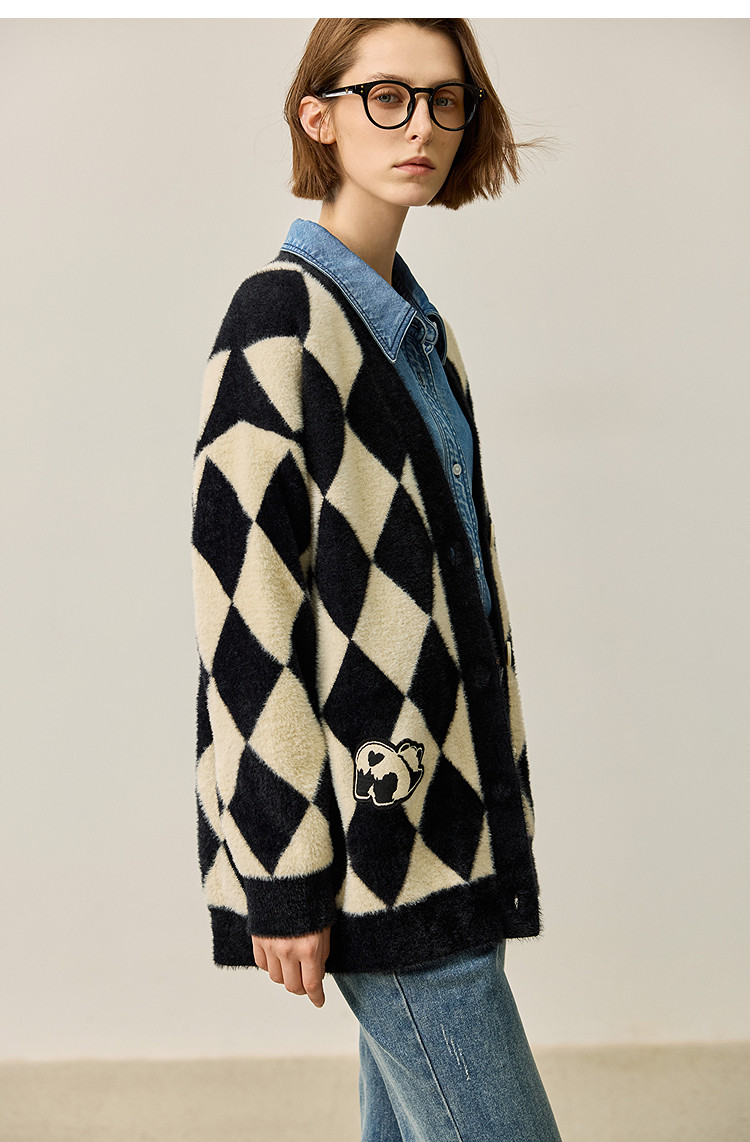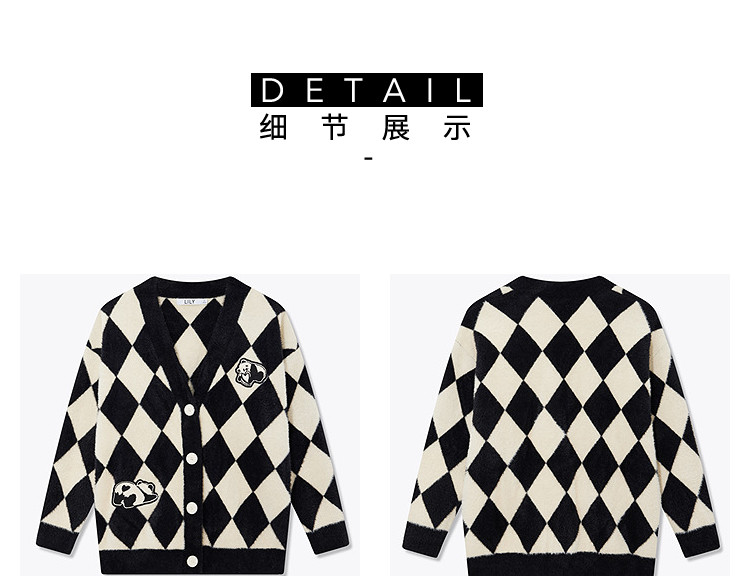 商品名称:【春季款】别致时尚撞色格纹都市通勤宽松毛针织开衫外套 254939