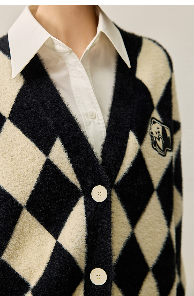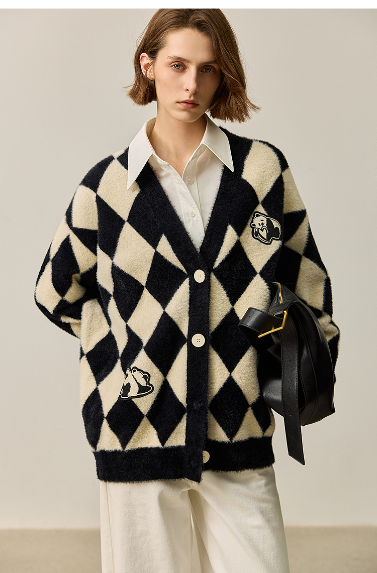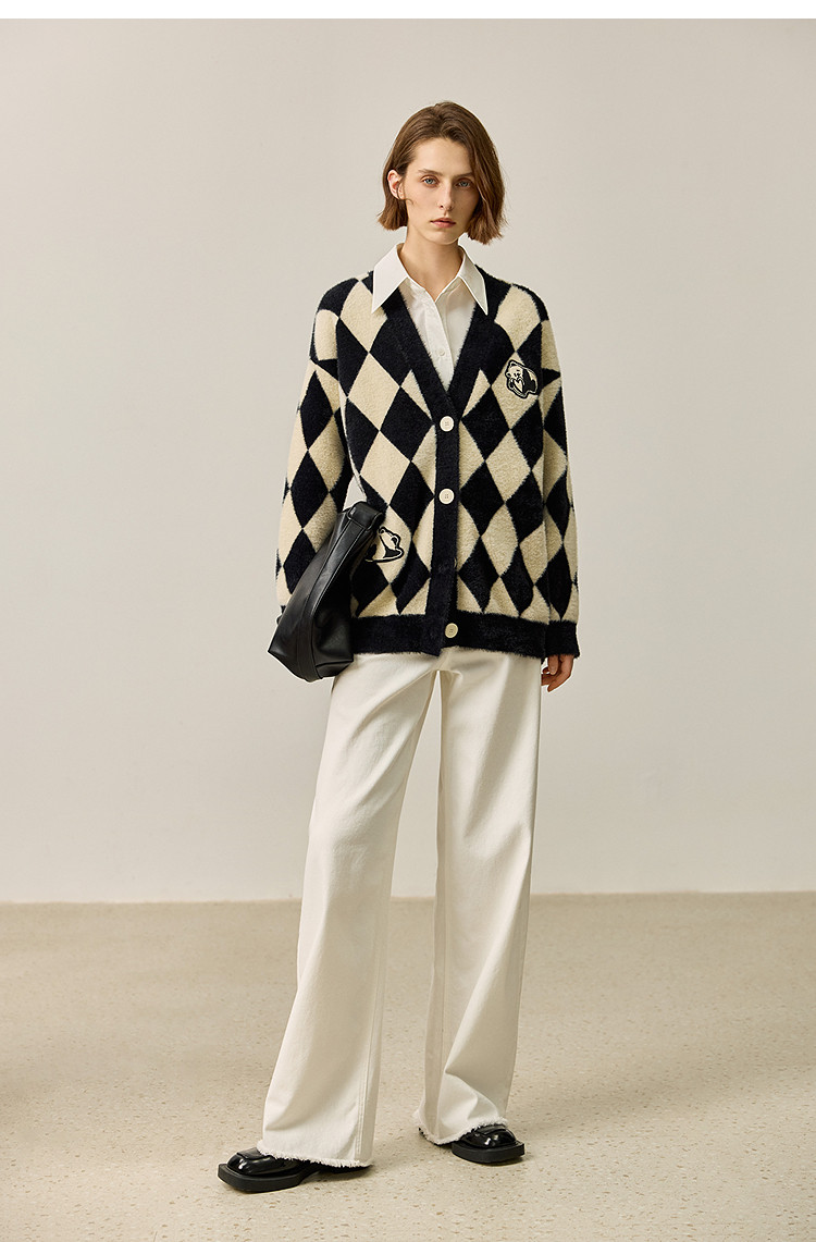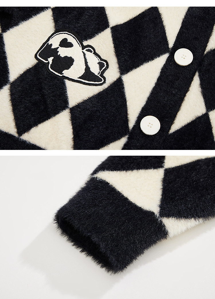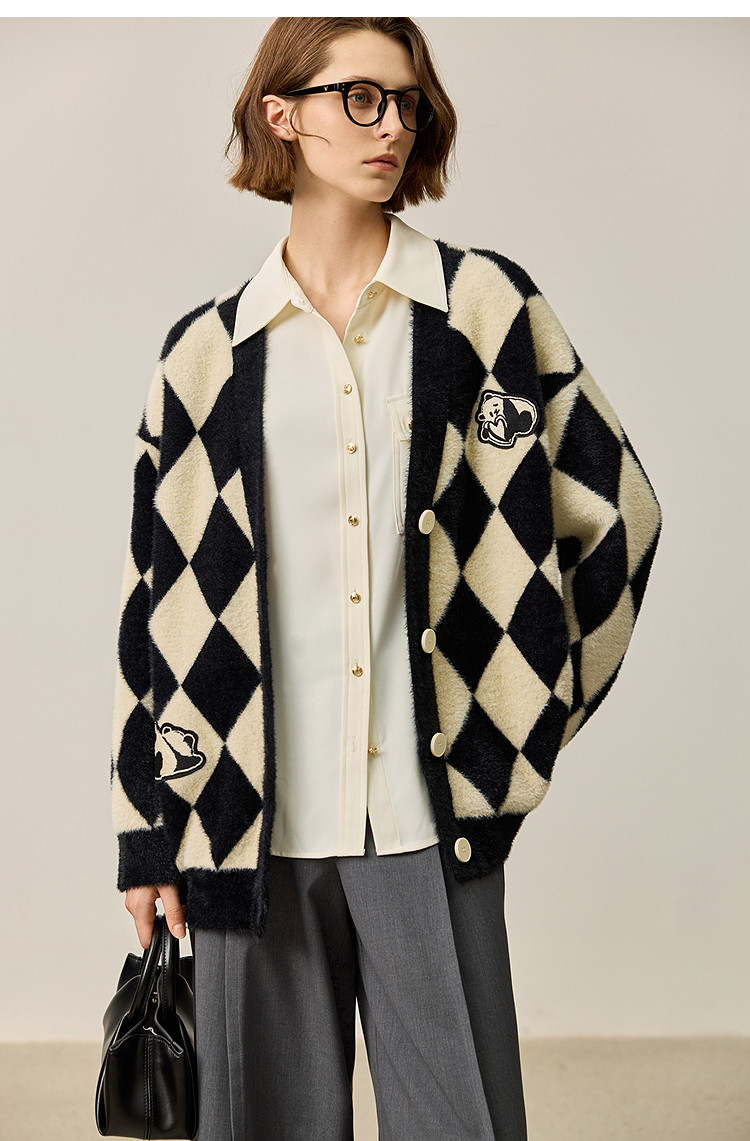 商品名称:【春季款】别致时尚撞色格纹都市通勤宽松毛针织开衫外套 254939