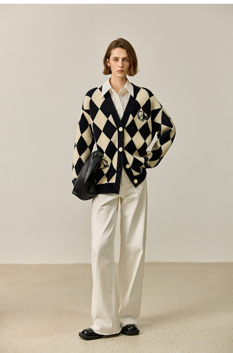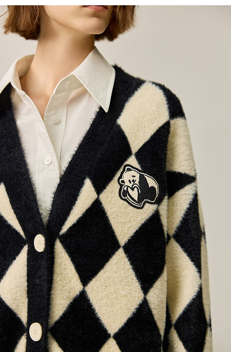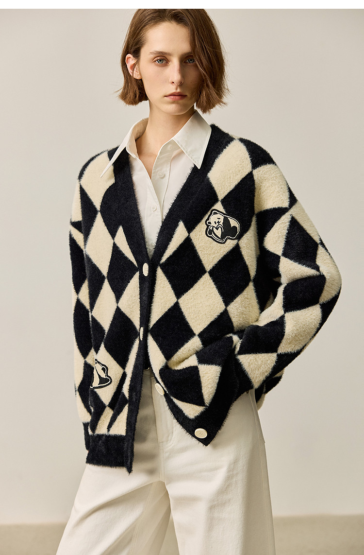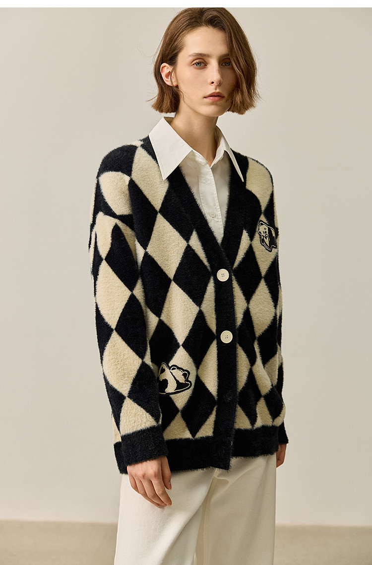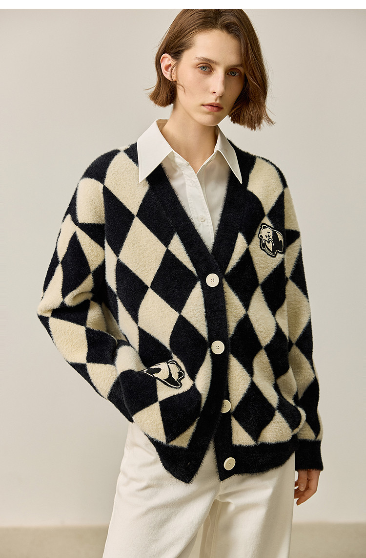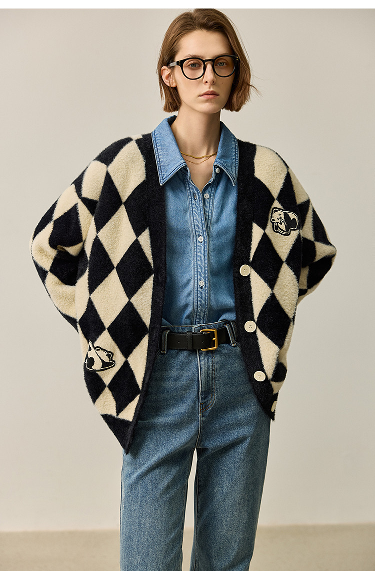 商品名称:【春季款】别致时尚撞色格纹都市通勤宽松毛针织开衫外套 254939