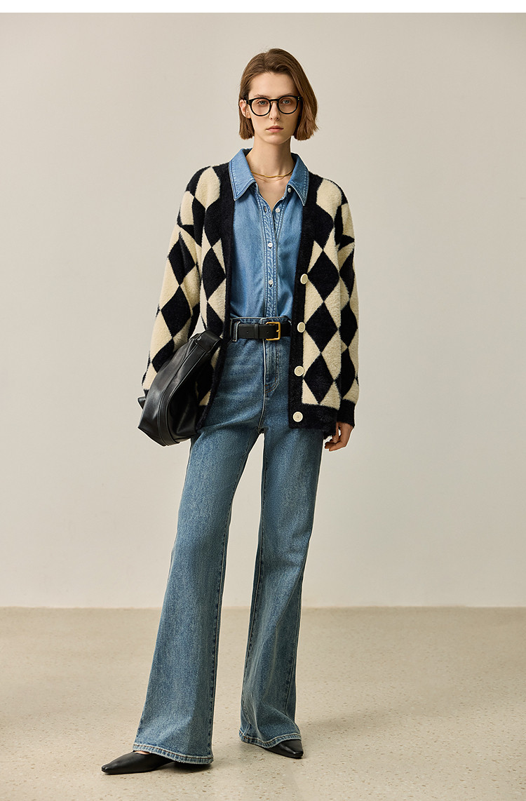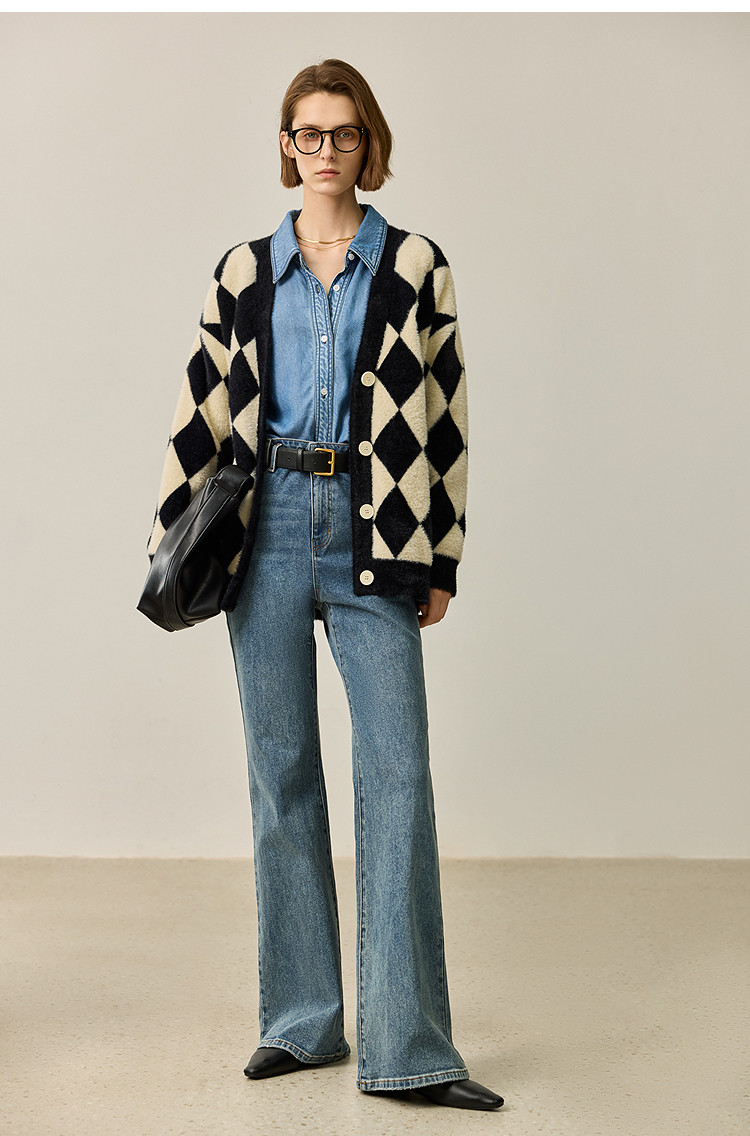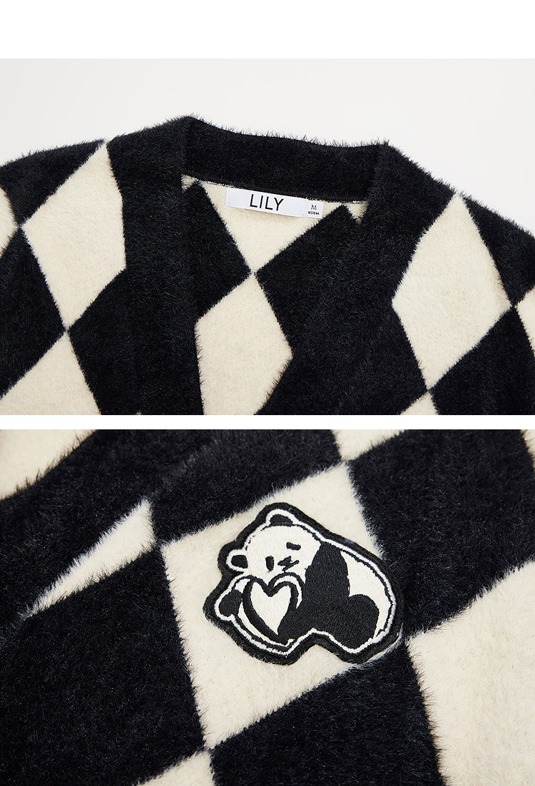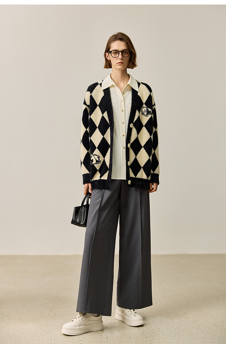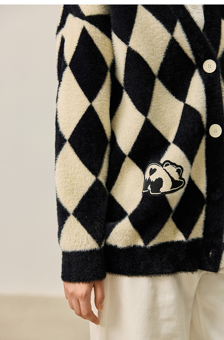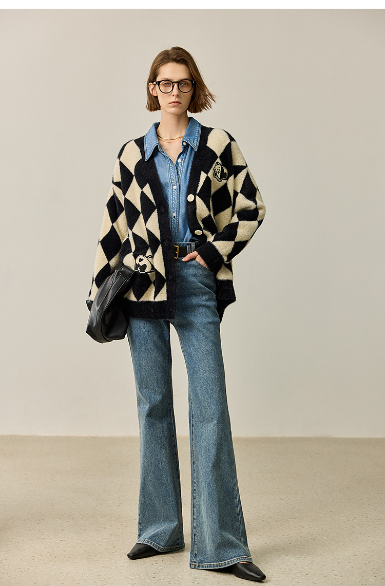 商品名称:【春季款】别致时尚撞色格纹都市通勤宽松毛针织开衫外套 254939