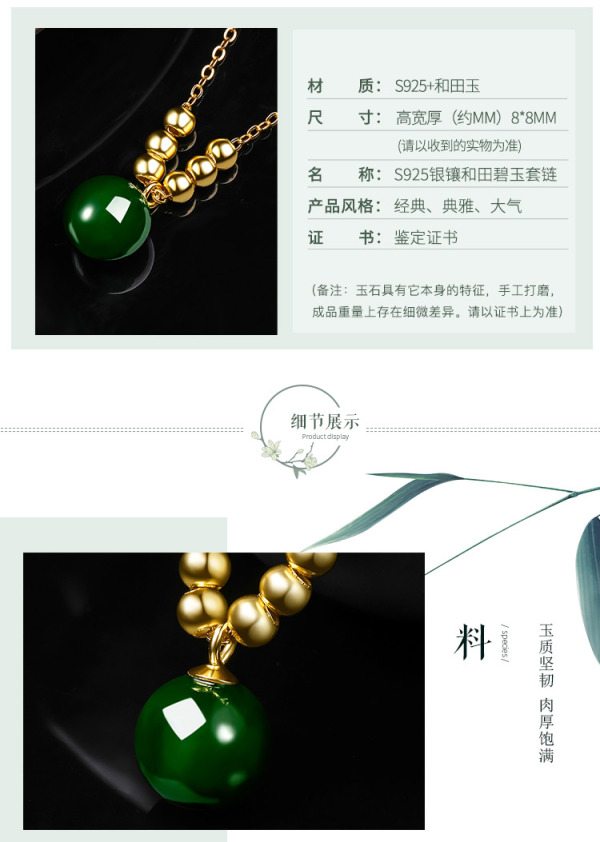 商品名称:中银金行 【6+1】S925银镶8MM和田碧玉套链DSAS0086