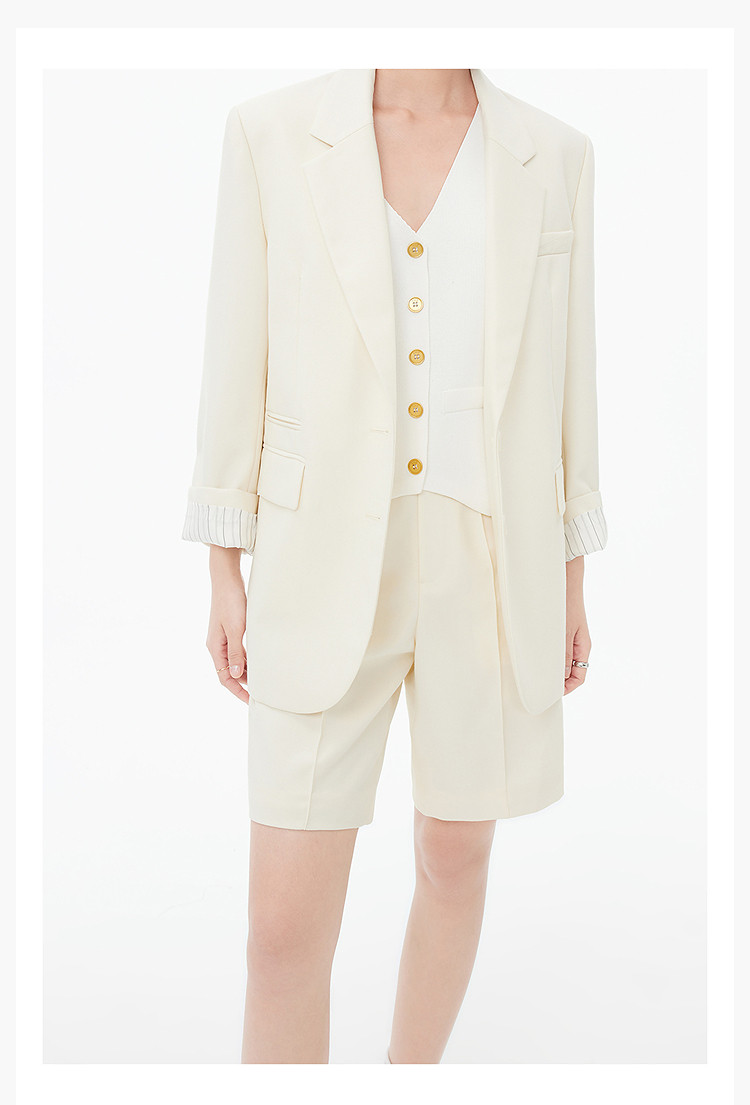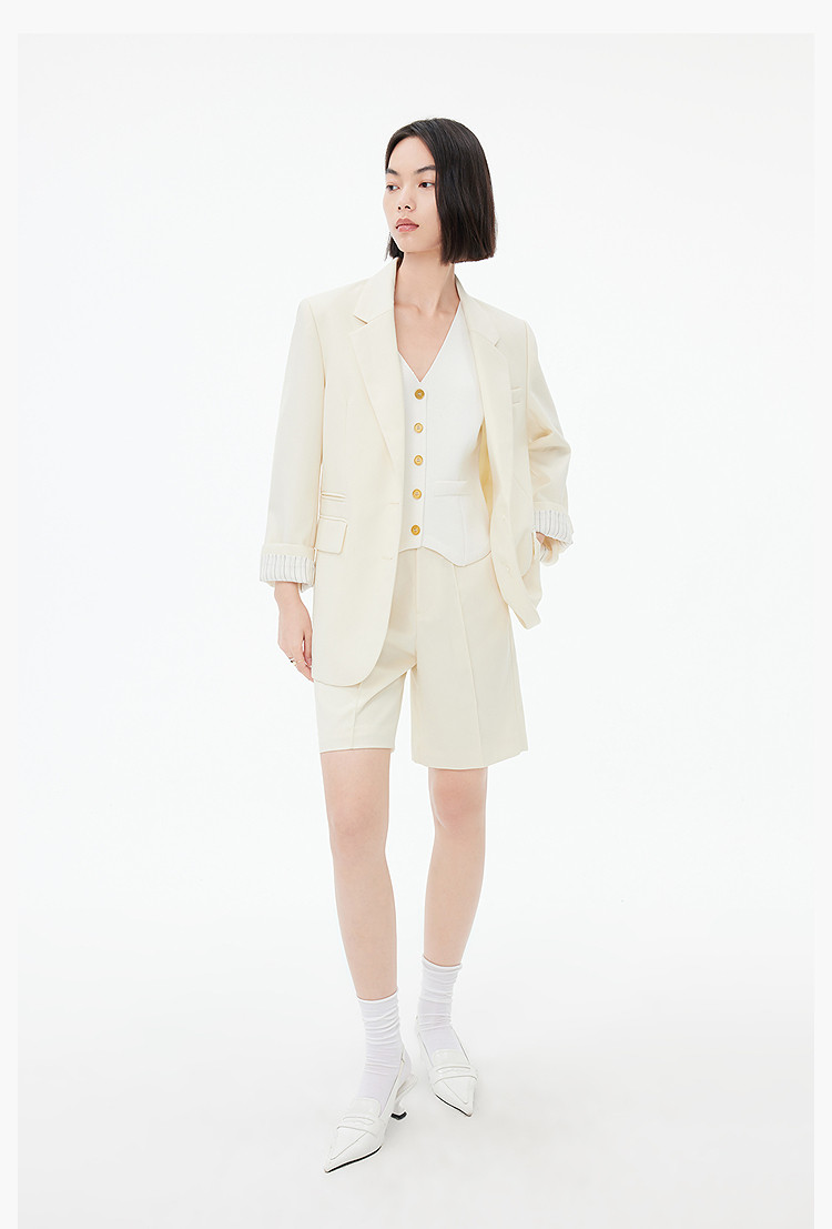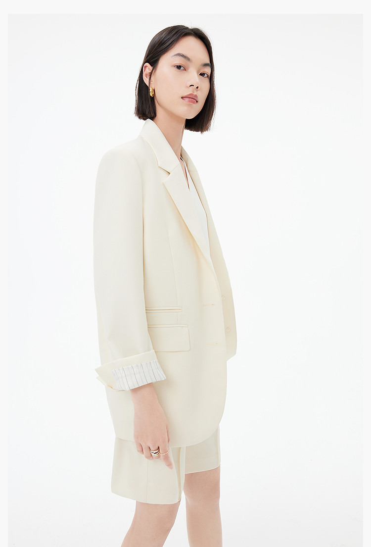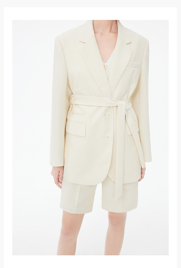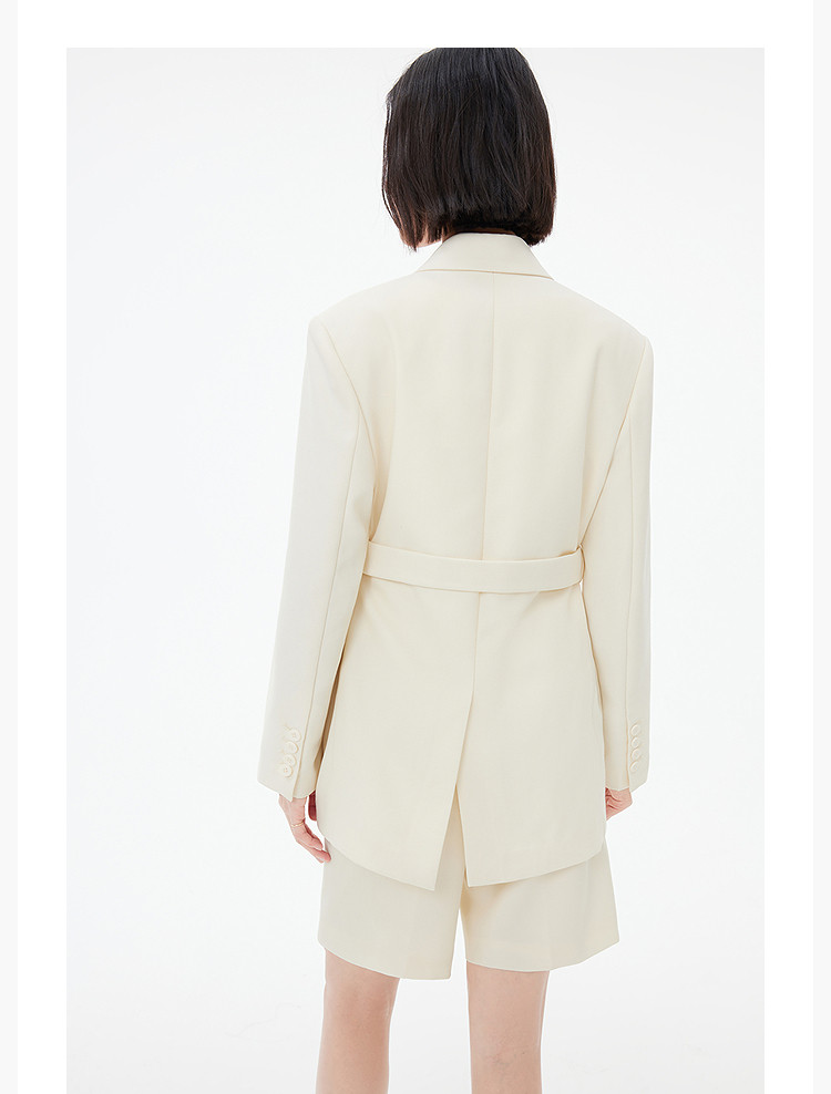 商品名称:春季款绵羊毛都市通勤气质宽松时尚腰带休闲西装外套 599707