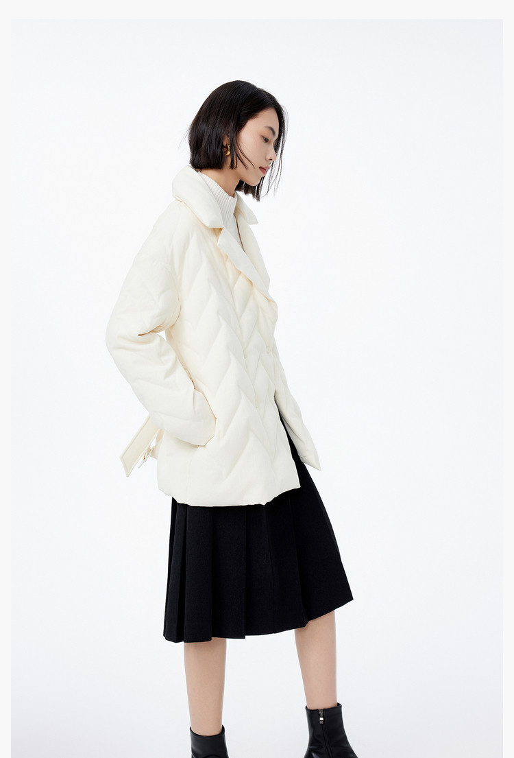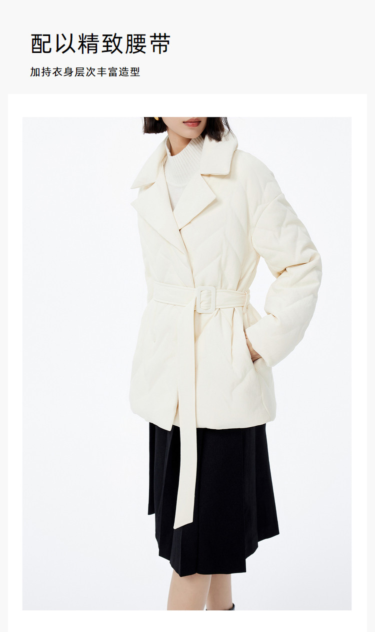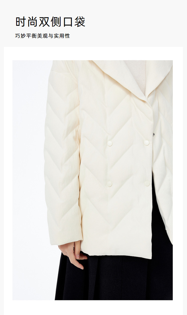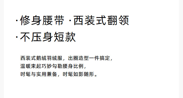 商品名称:冬季保暖鹅绒时尚通勤款西装式羽绒服外套小个子女 519579