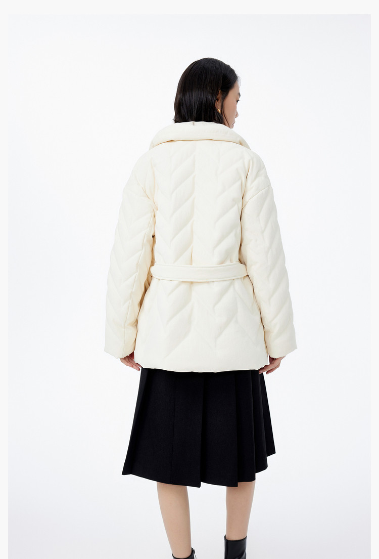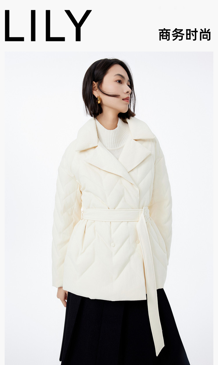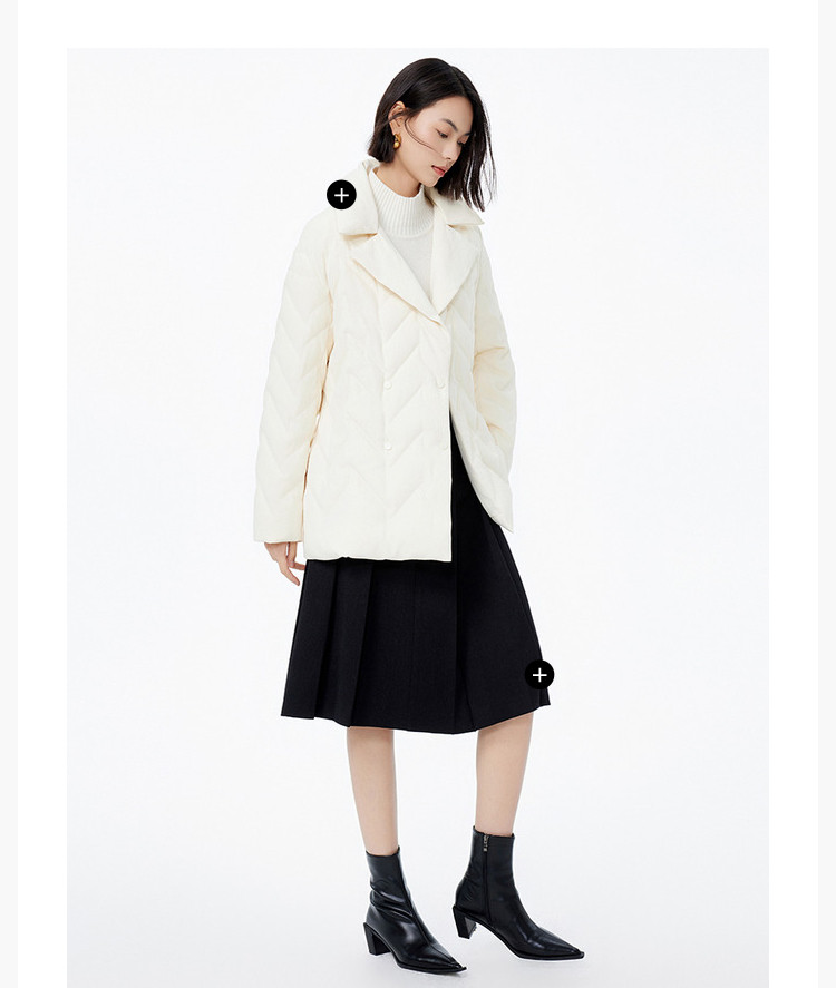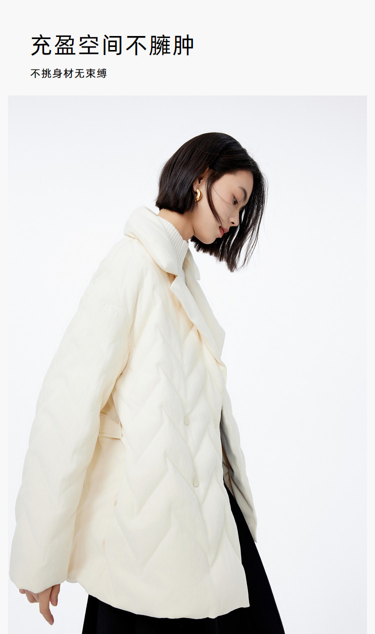 商品名称:冬季保暖鹅绒时尚通勤款西装式羽绒服外套小个子女 519579