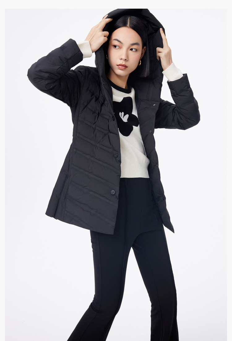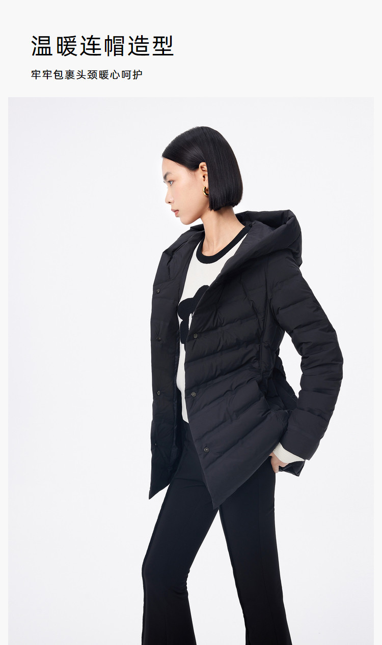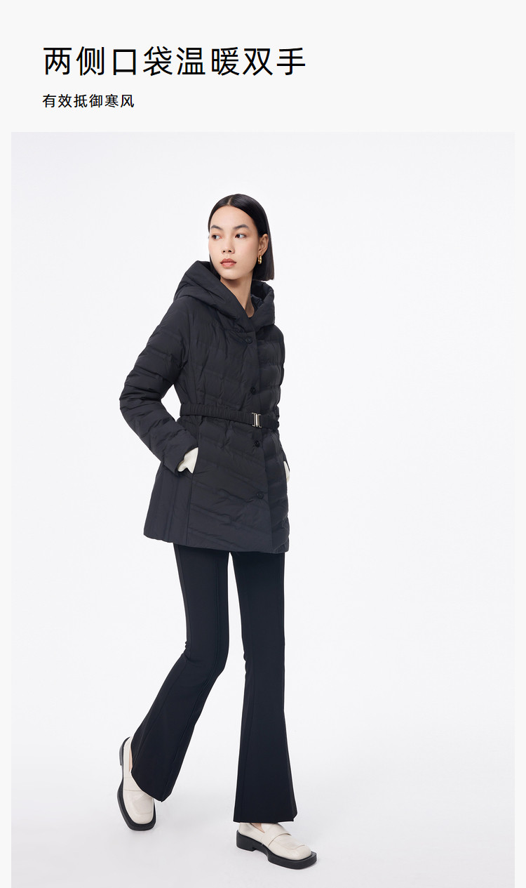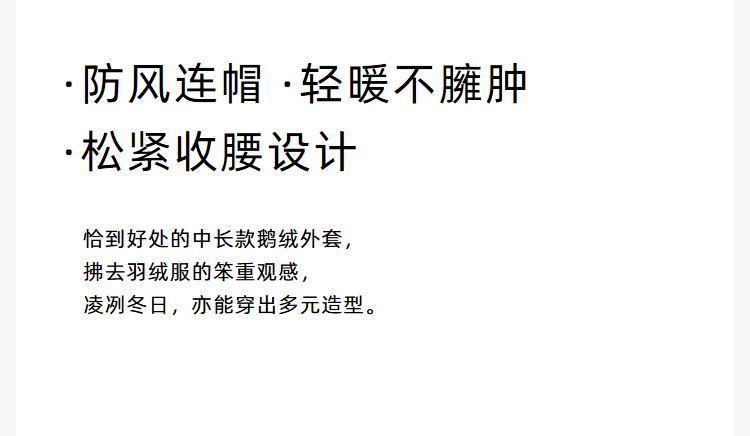 商品名称:初冬季保暖鹅绒时尚休闲连帽羽绒服外套中长款小个子 410587