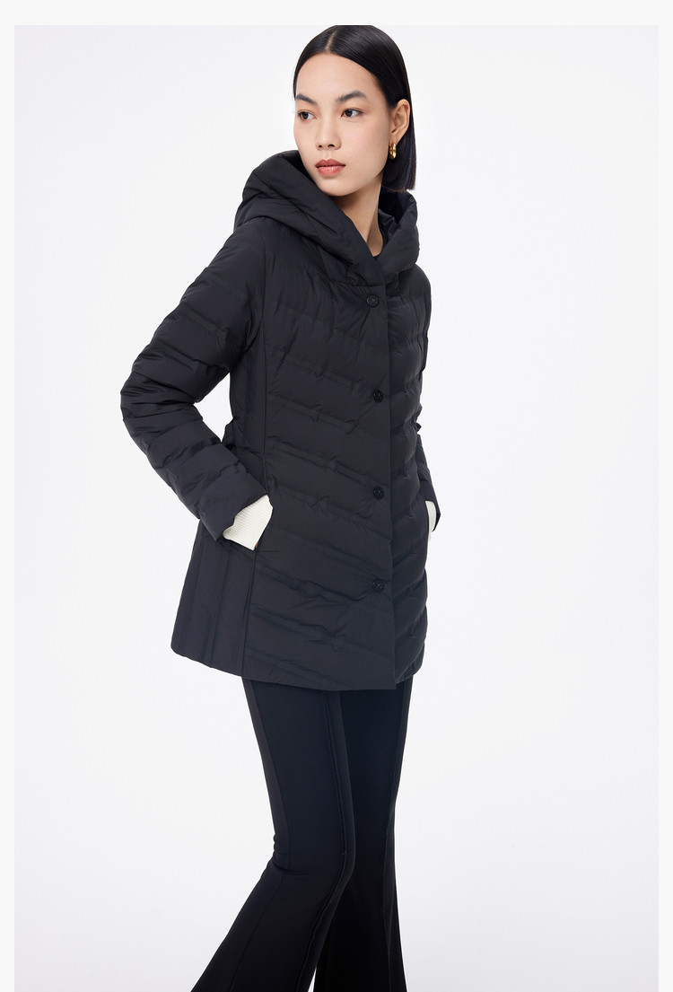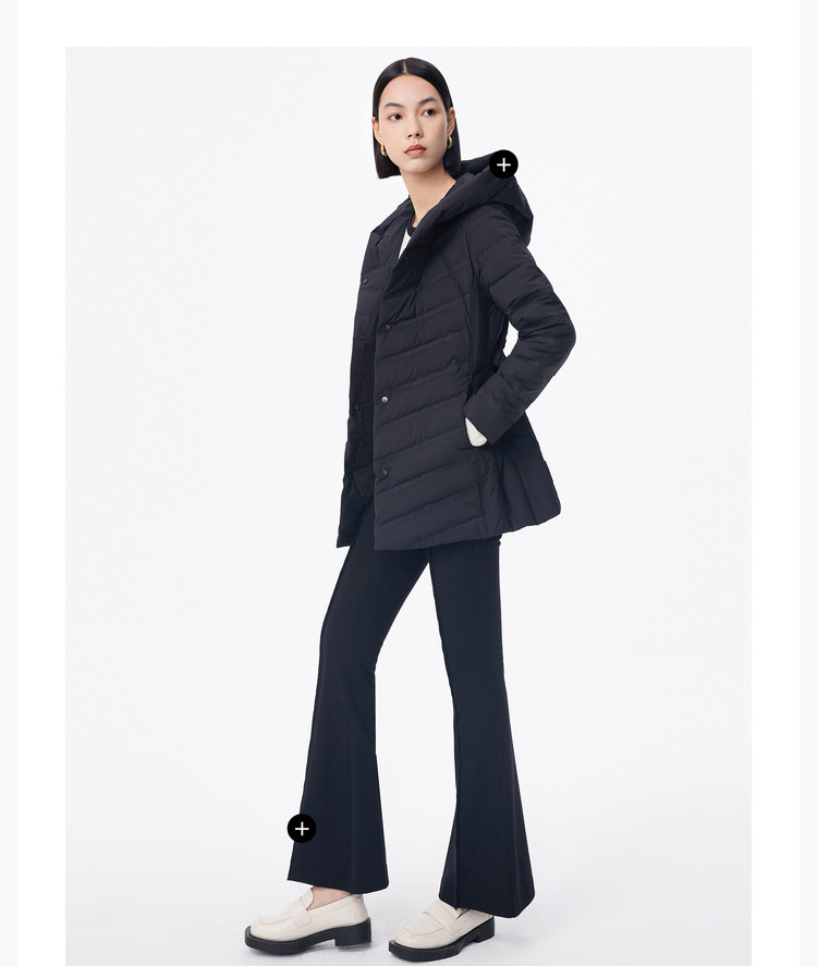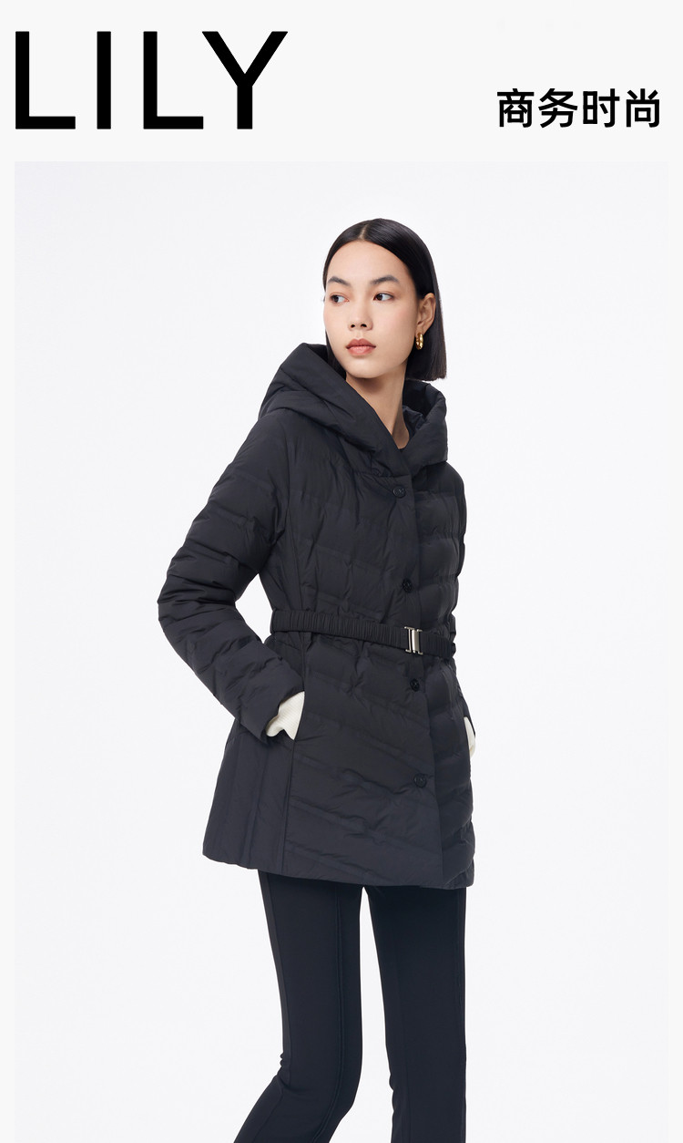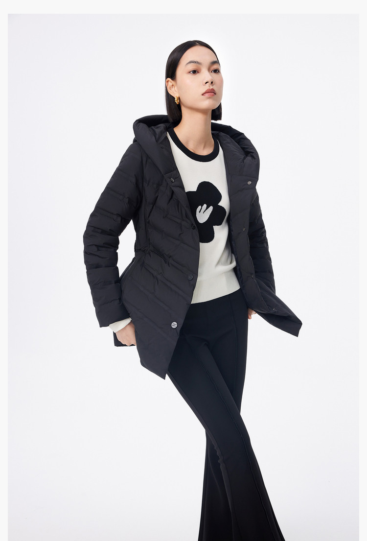 商品名称:初冬季保暖鹅绒时尚休闲连帽羽绒服外套中长款小个子 410587