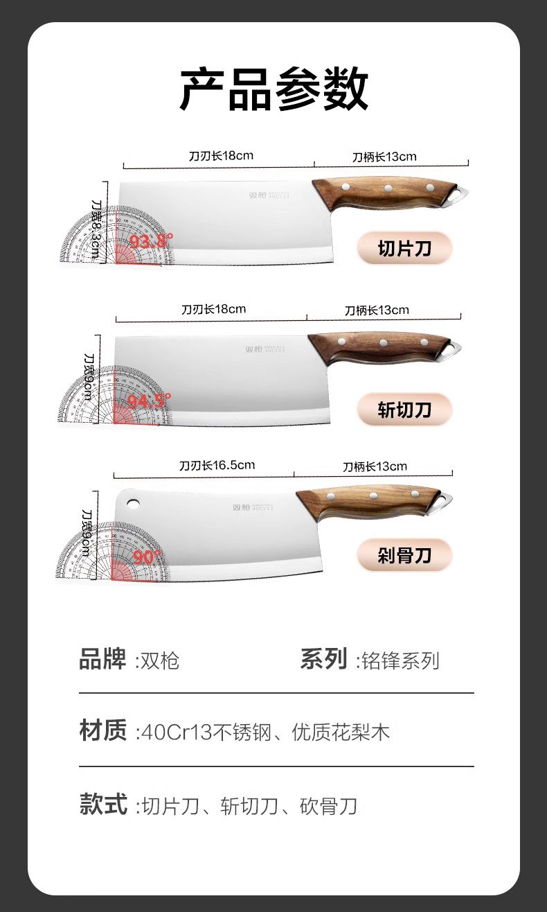 商品名称:双枪(Suncha)刀具中式厨房切菜刀家用厨师不锈钢斩骨切片刀