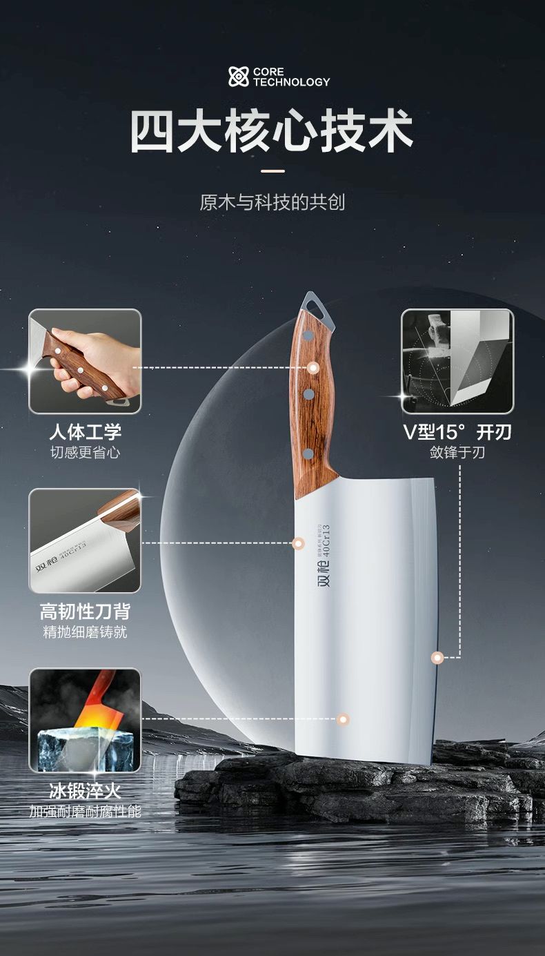 双枪(Suncha)刀具中式厨房切菜刀家用厨师不锈钢斩骨切片刀