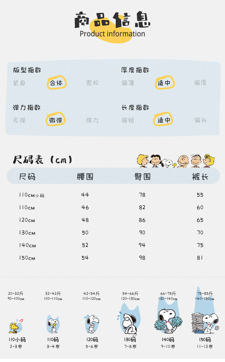| 尺码 | 身高(cm) | 腰围(cm) | 裤长(cm) | 臀围(cm) | 适合年龄 | 号型 |