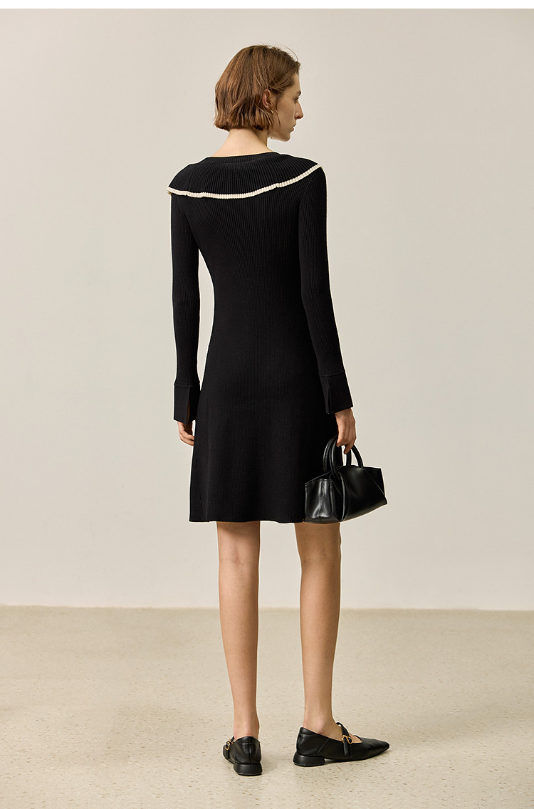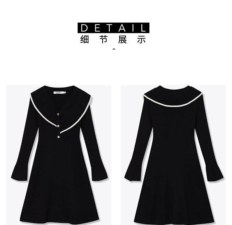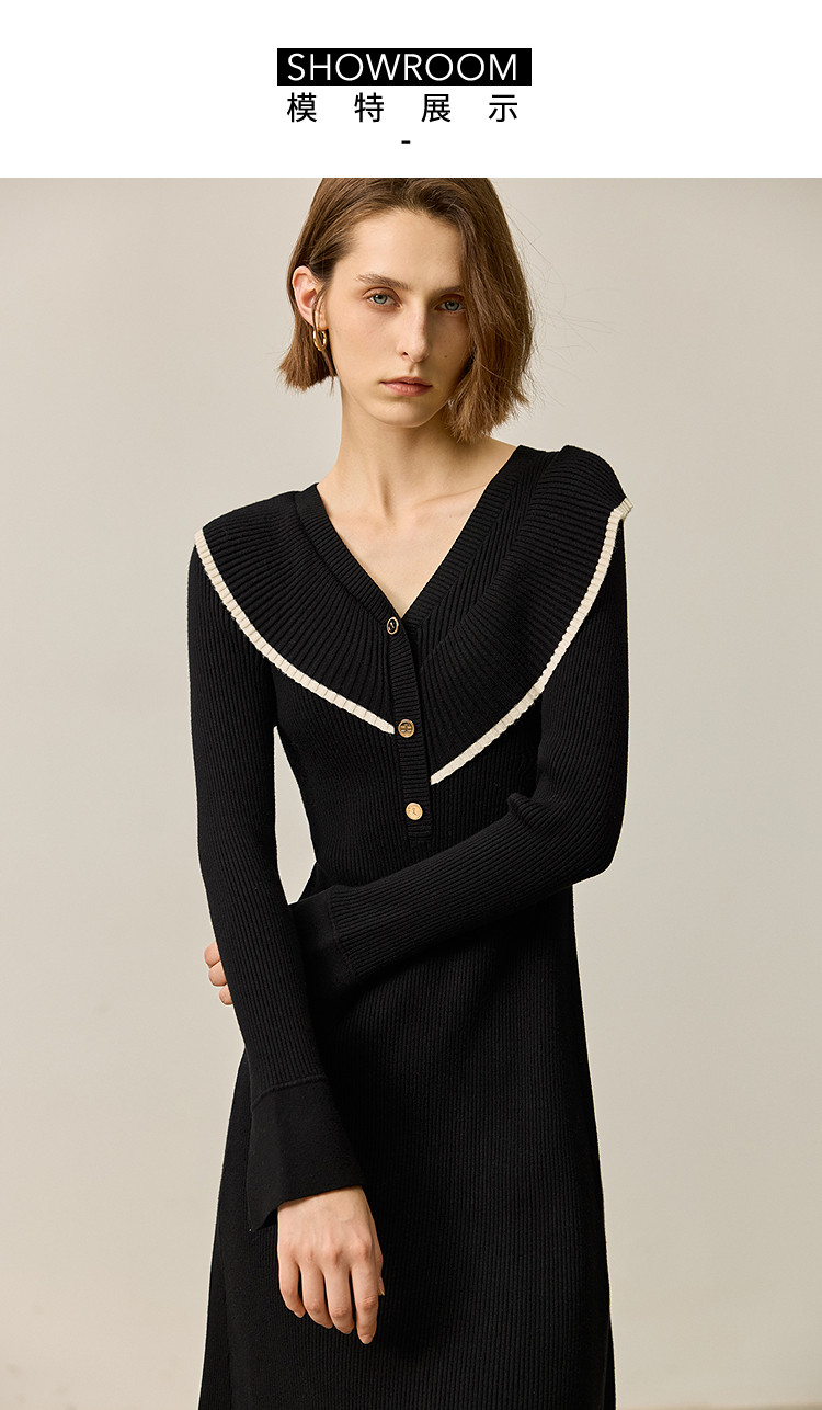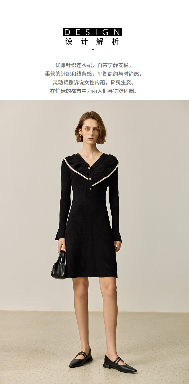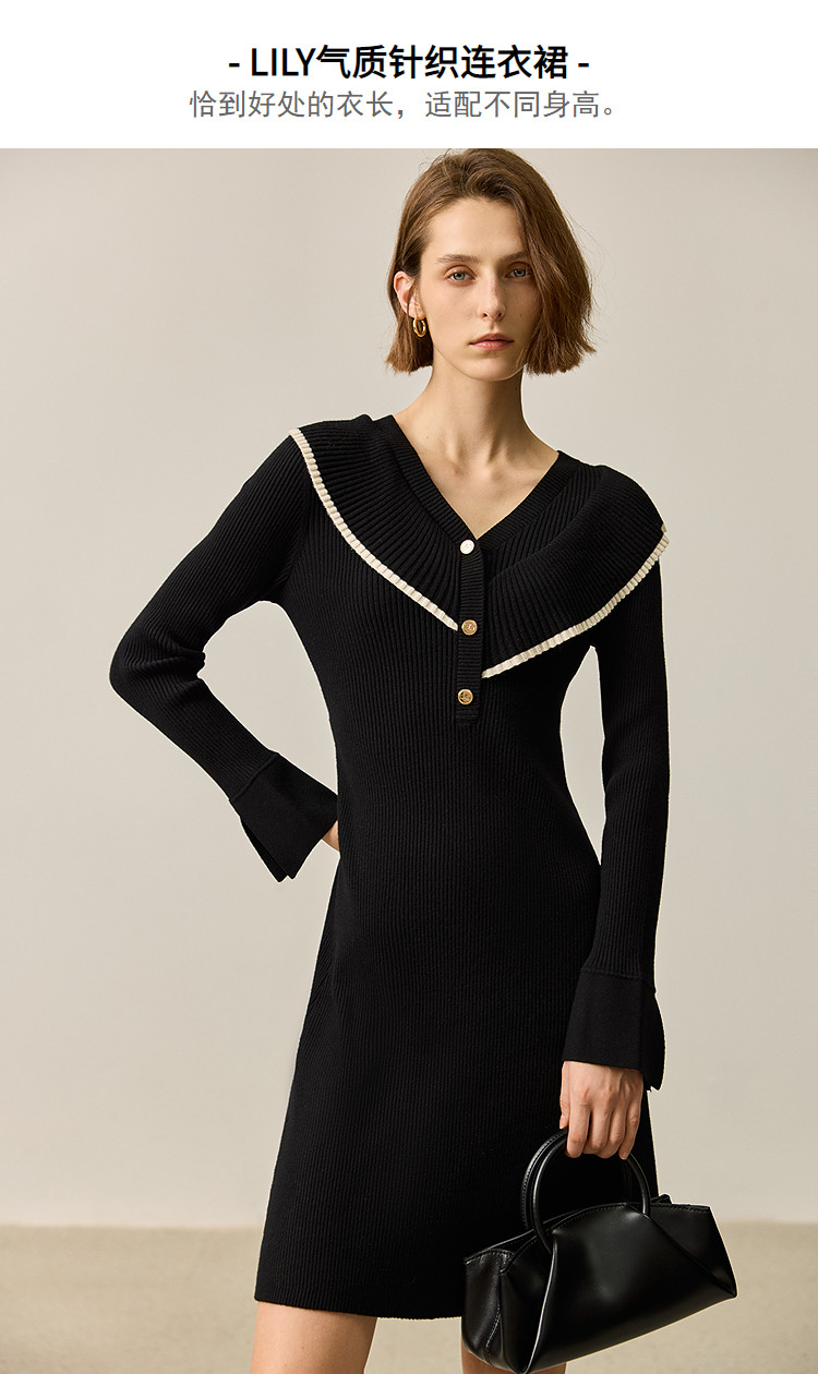 商品名称:【春季款】气质优雅通勤款荷叶花边修身针织连衣裙小个子 912347