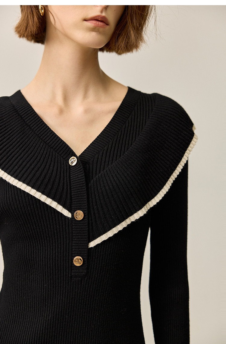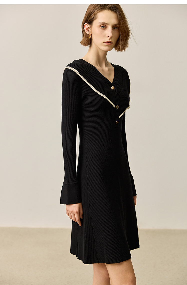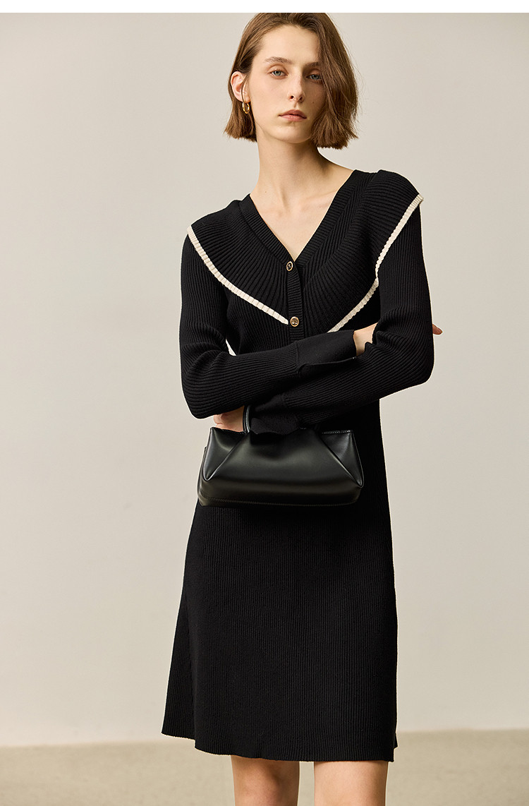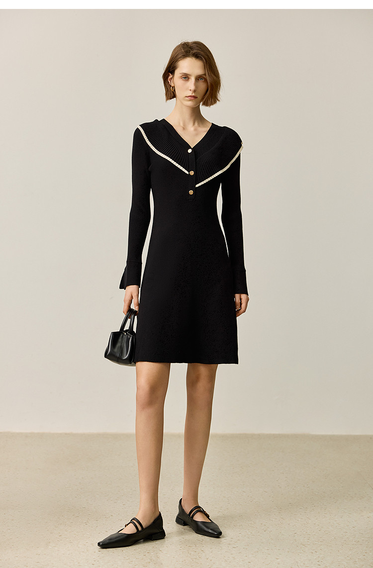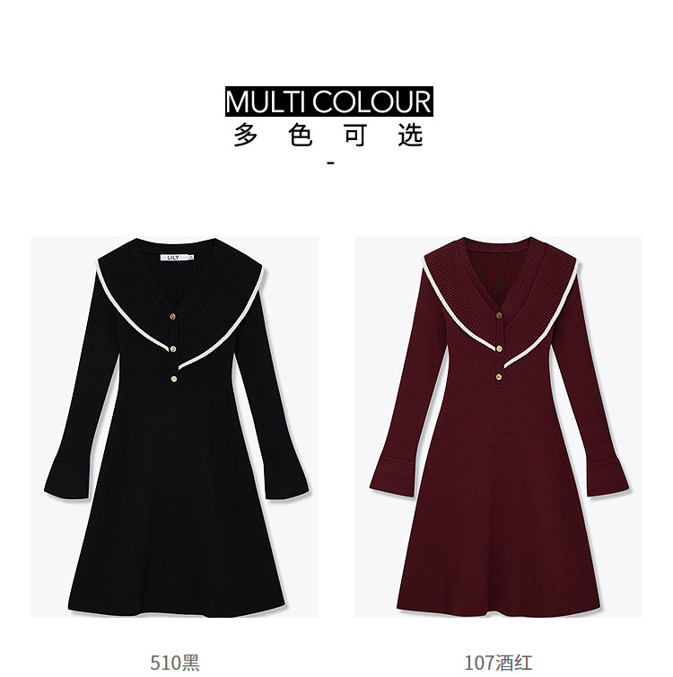 商品名称:【春季款】气质优雅通勤款荷叶花边修身针织连衣裙小个子 912347